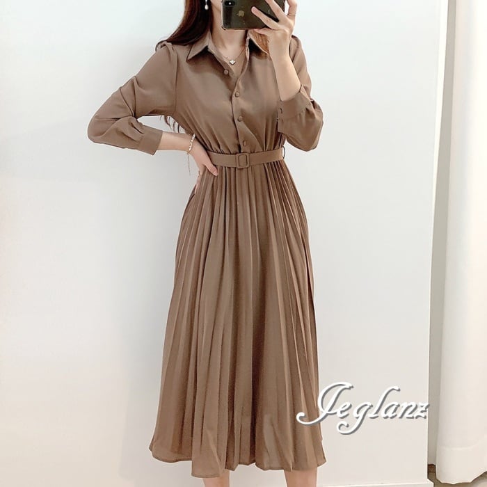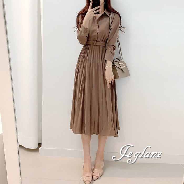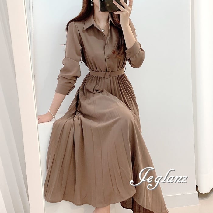2色 シャツ ワンピース ドレス プリーツ 共ベルト 細見え(MA997)γα