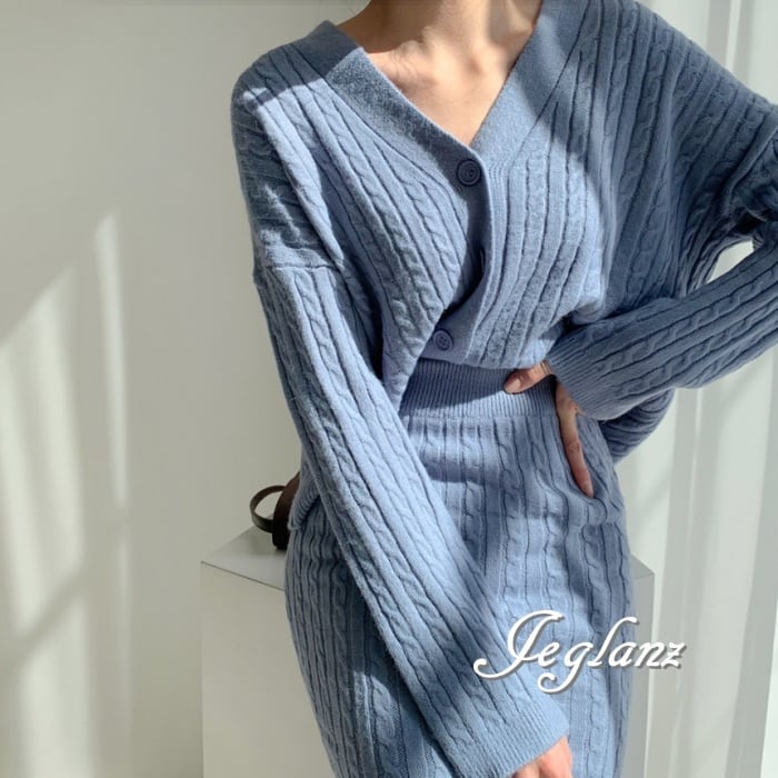 2色 セットアップ 2点 ニット カーデ Vネック タイト スカート(MA998)λ