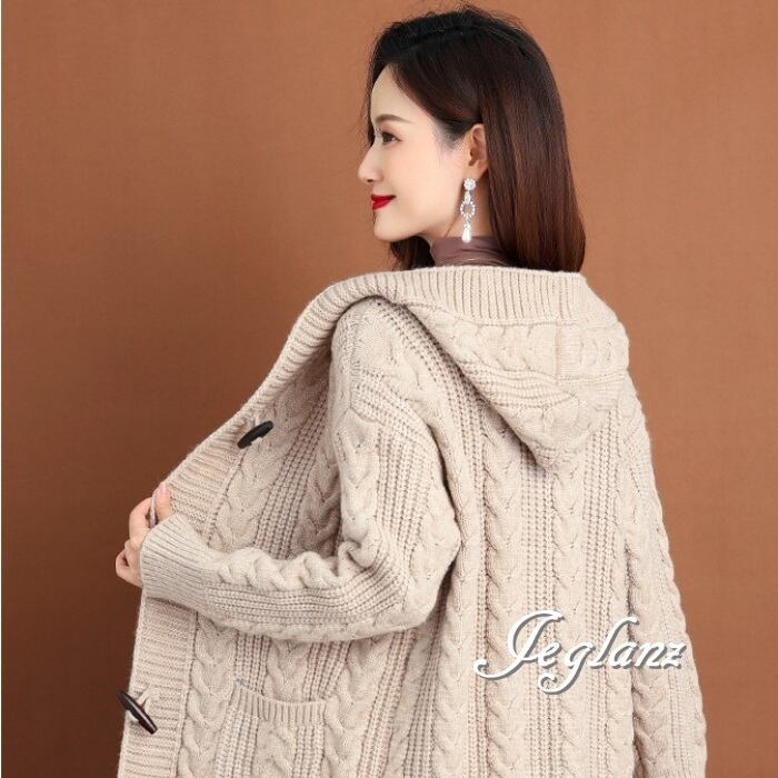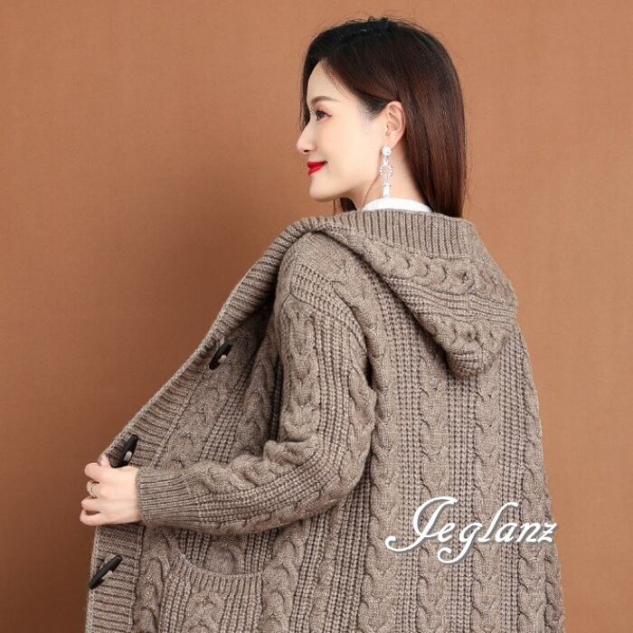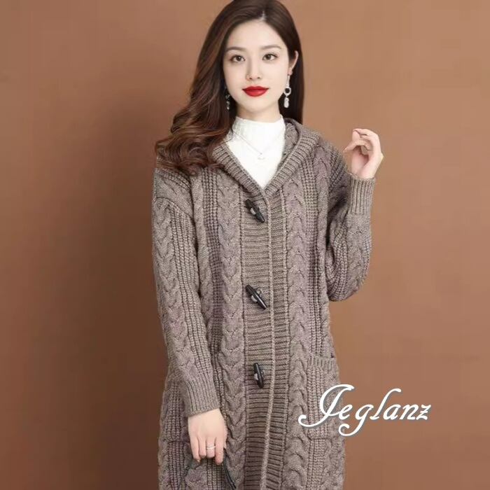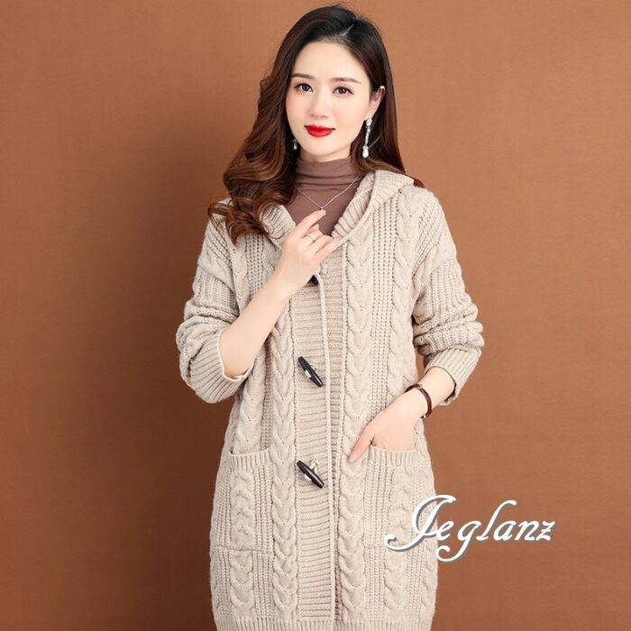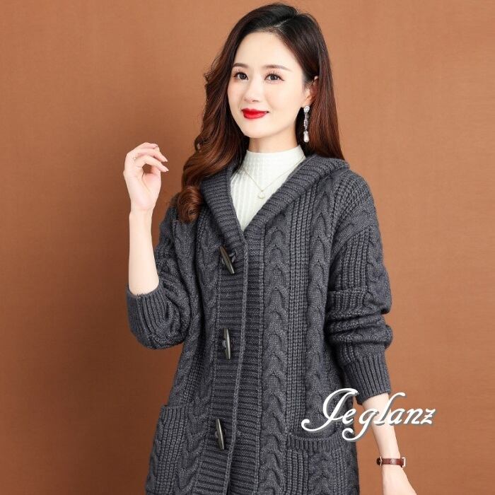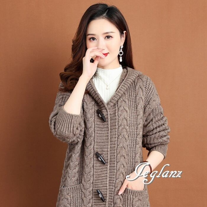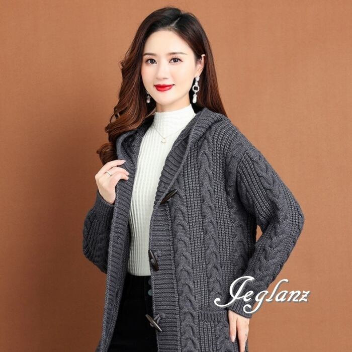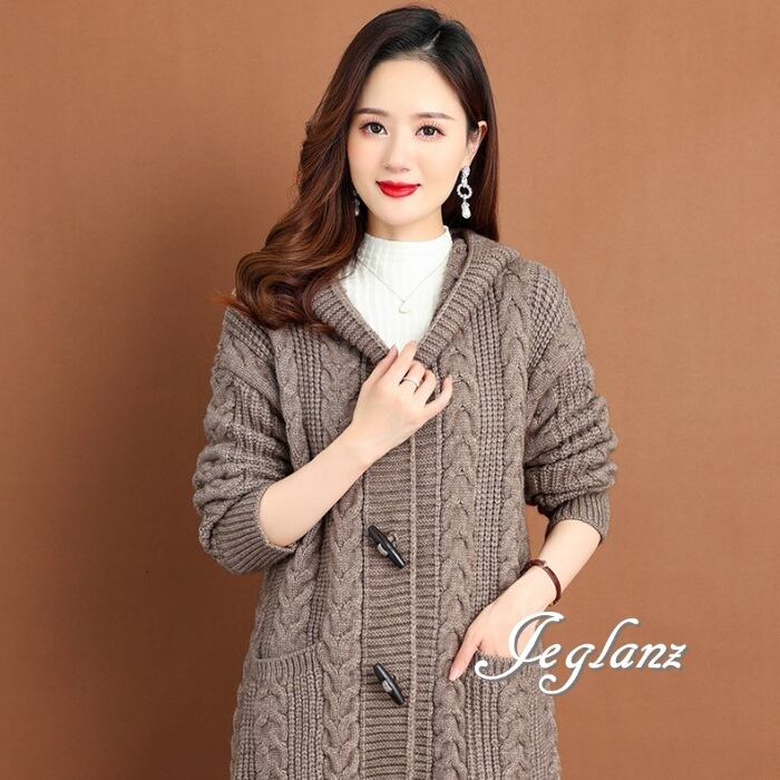 3色 ニット カーディガン フード付き トグルボタン 大きいサイズ(MB009)τ