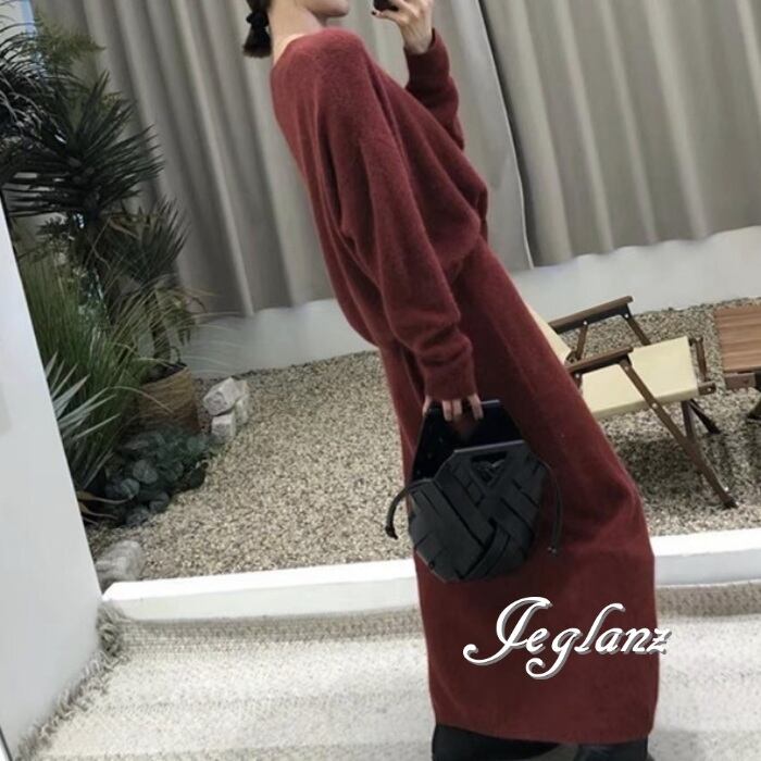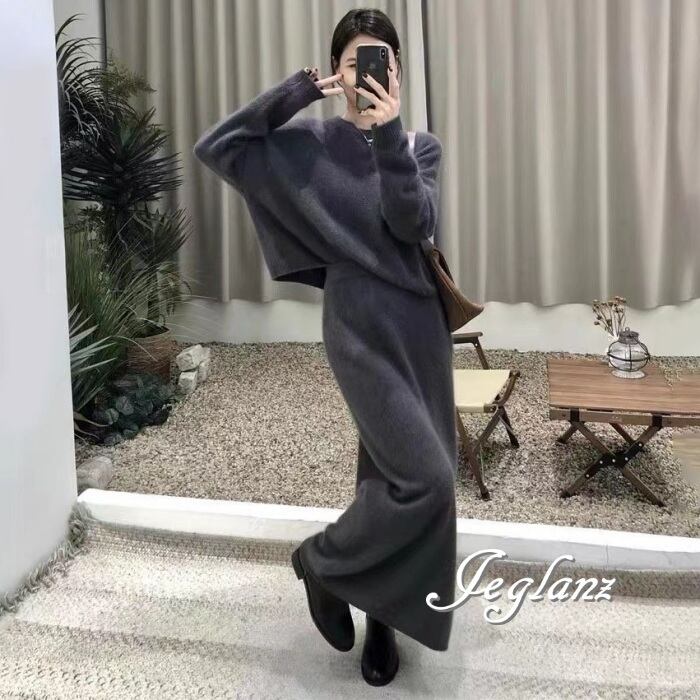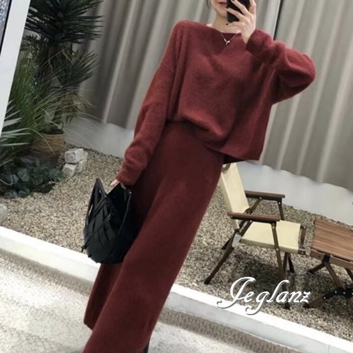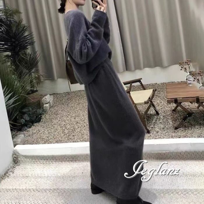 セットアップ 2点 ニット ドロップショルダー マキシ スカート 4色(MB016)λ