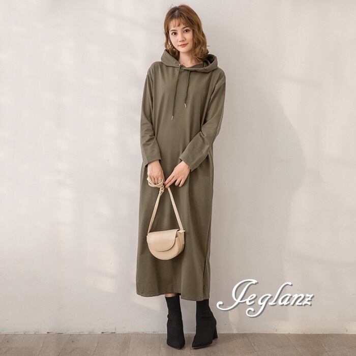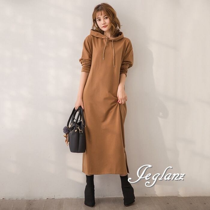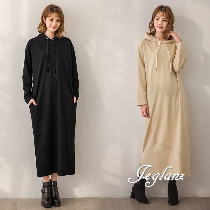 4色 スウェット ワンピース フード付き ゆったり カジュアル派(MB018)γ