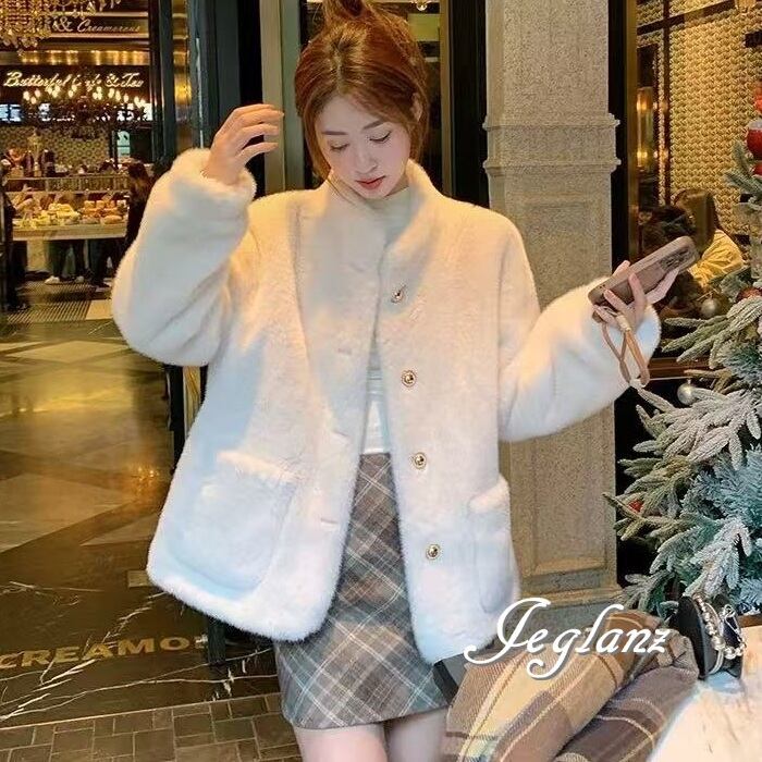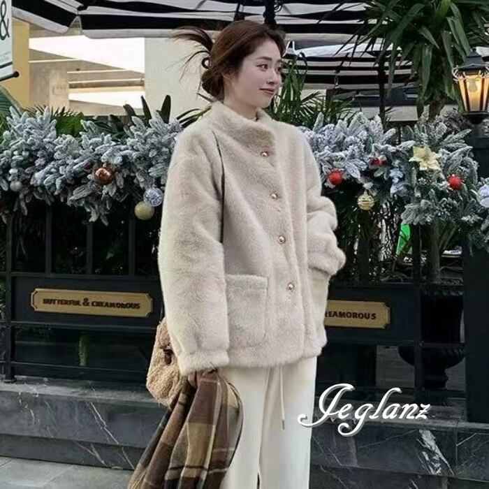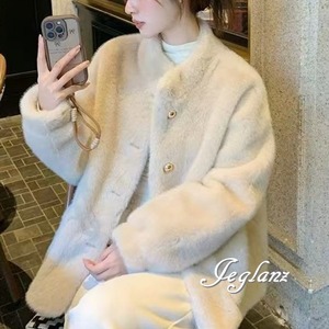 2色 ファー コート エコファー ミディコート スタンドカラー (MB020)φ