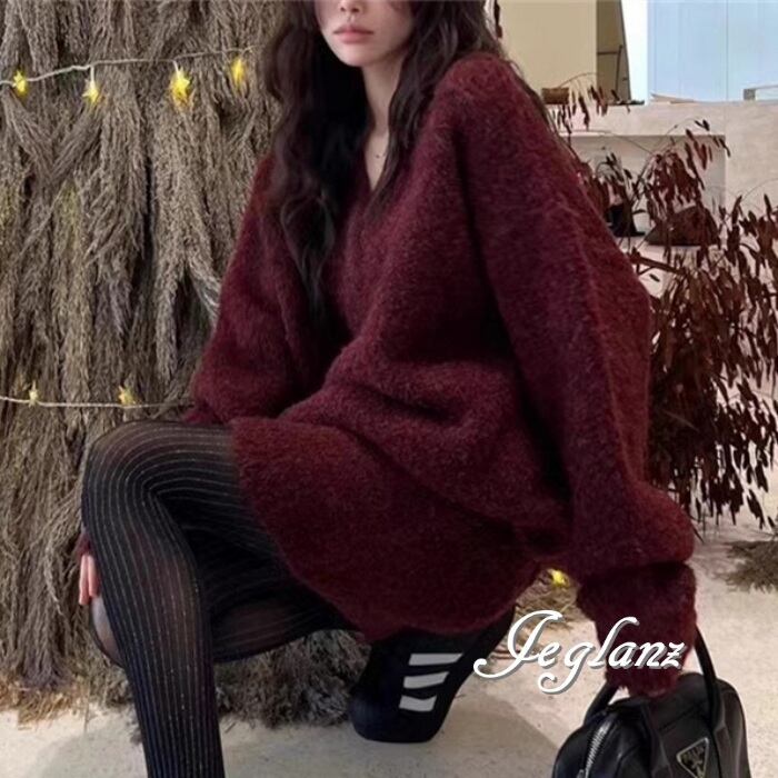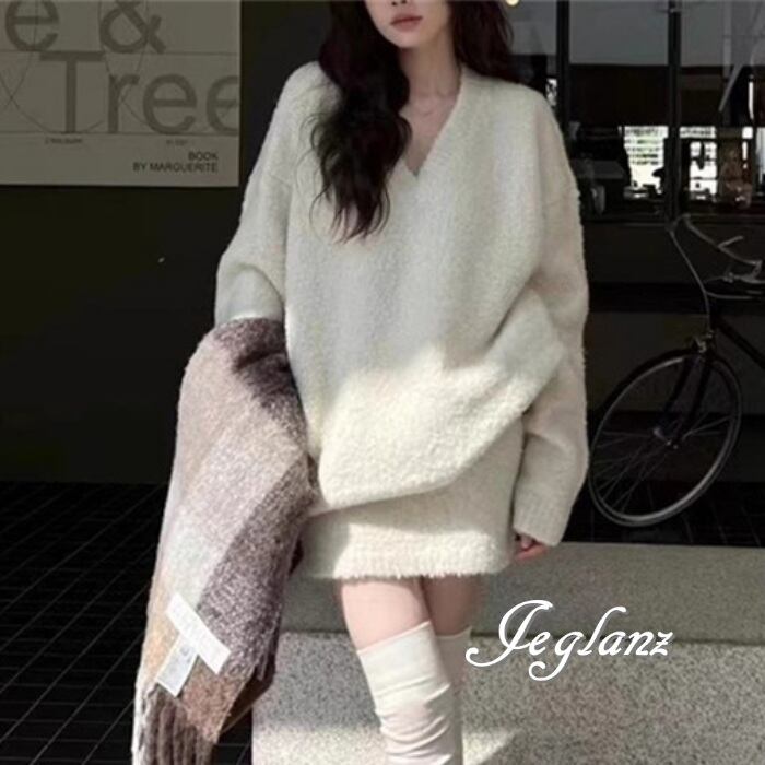3色 セットアップ 2点 ニット Vネック トップス 肩落ち ミニスカ (MB049)λ