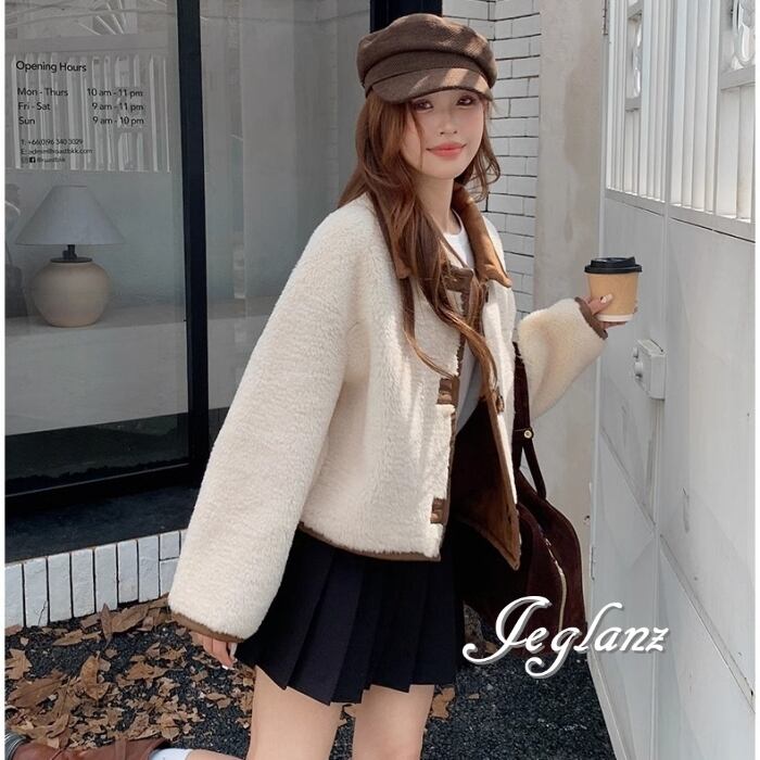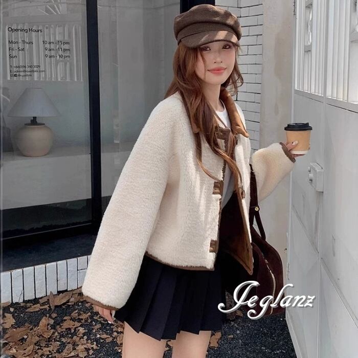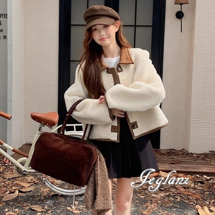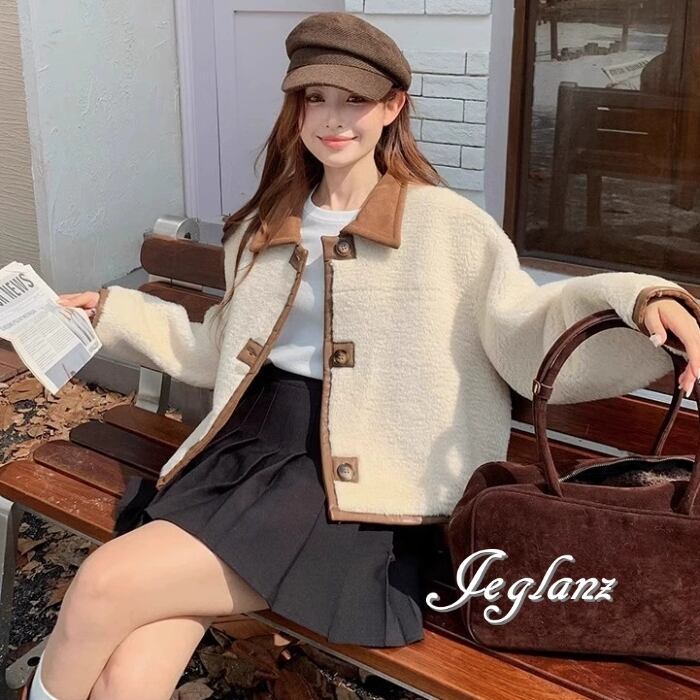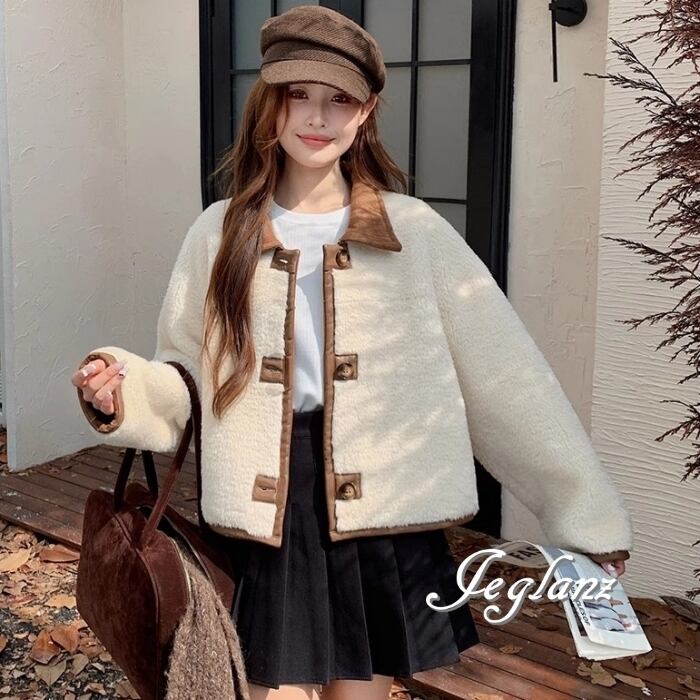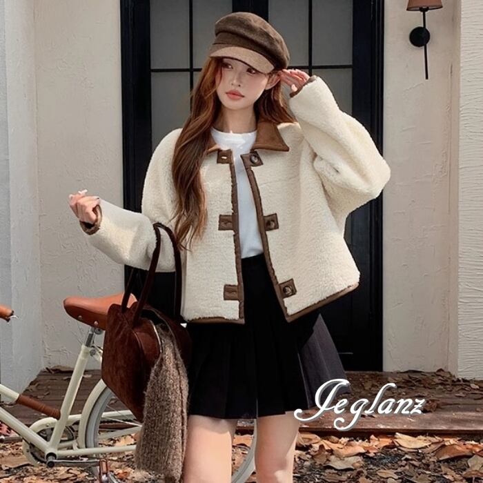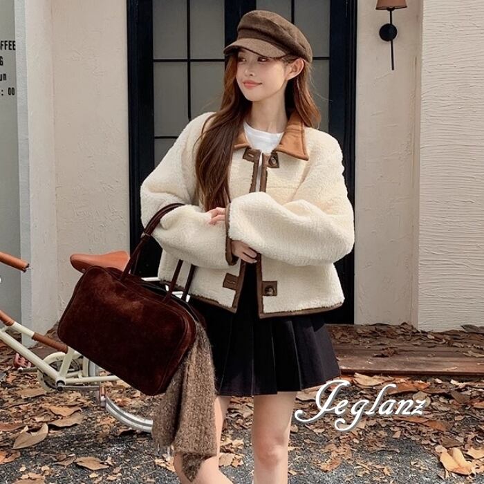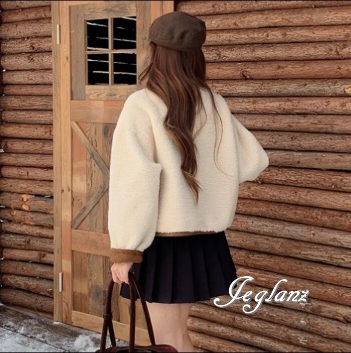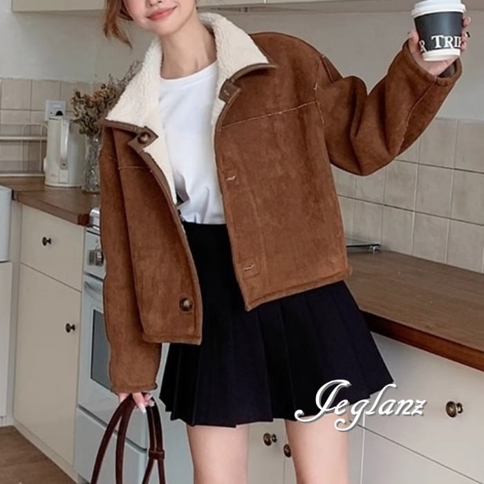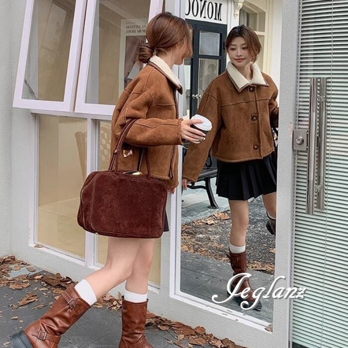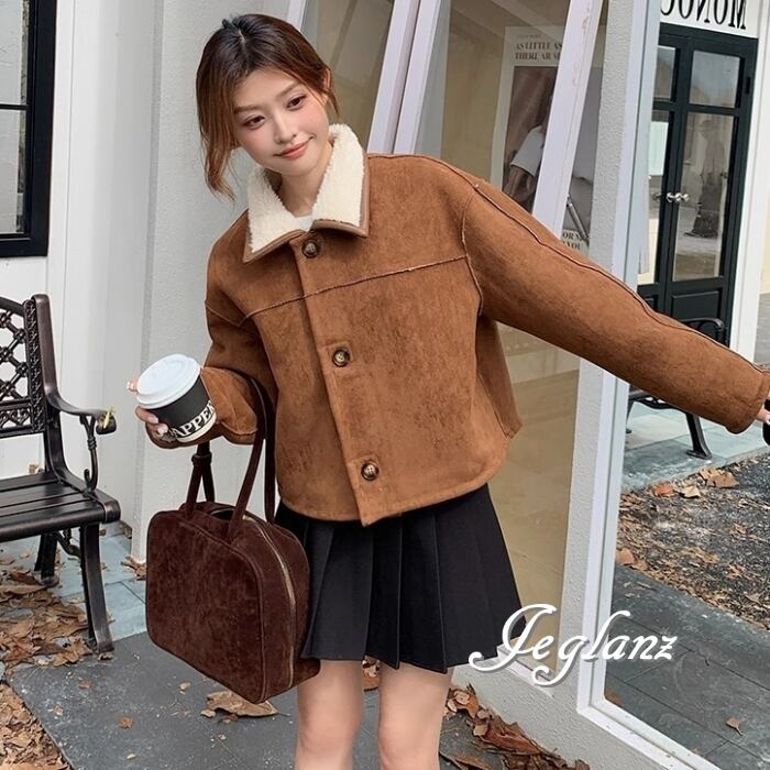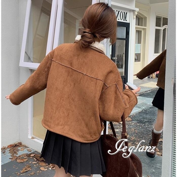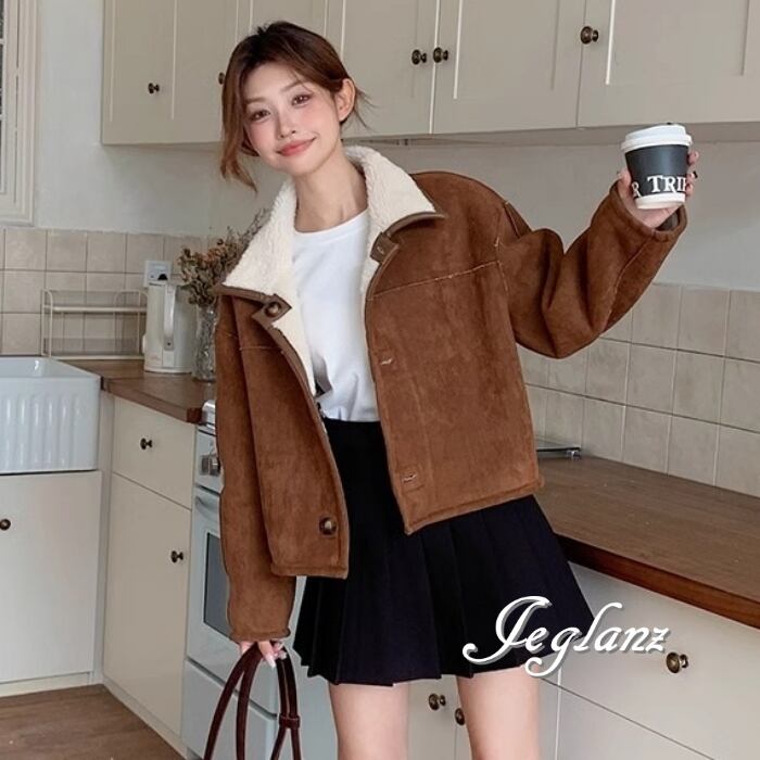 リバーシブル スウェード調 ジャケット 異素材 ボア 襟付き 2way(MB070)τ