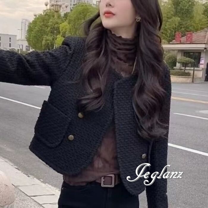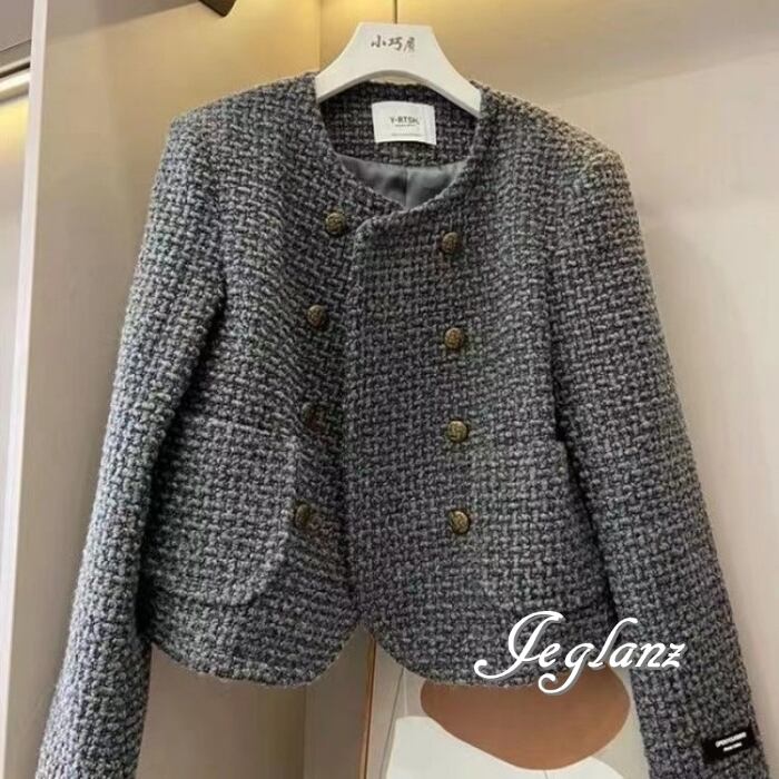 2色 ツイード ニット ジャケット ダブルブレスト クラスアップ感(MB116)τ