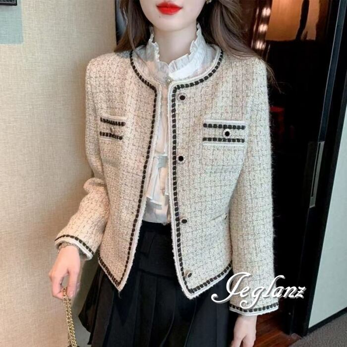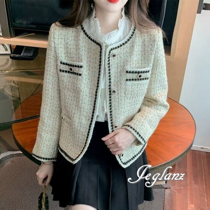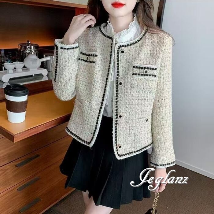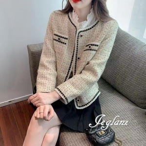 ツイード ニット ジャケット 羽織り トリミング クラス感(MB117)τ