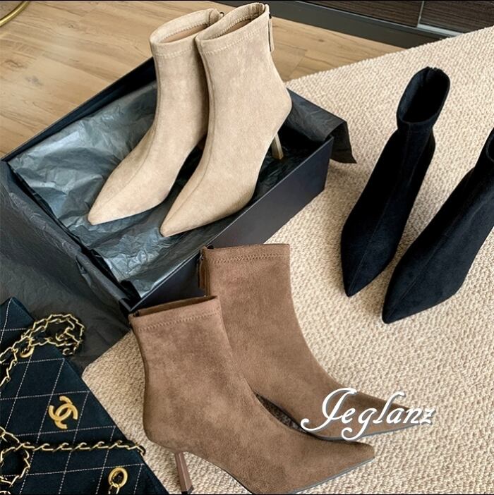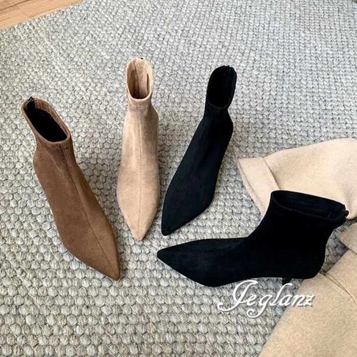 3色 ミドル ブーツ スエード調 フェイク バックファスナー(MB120)ω