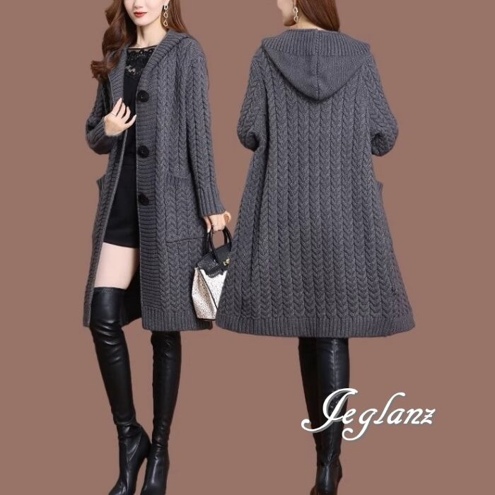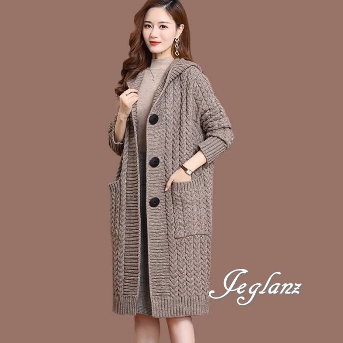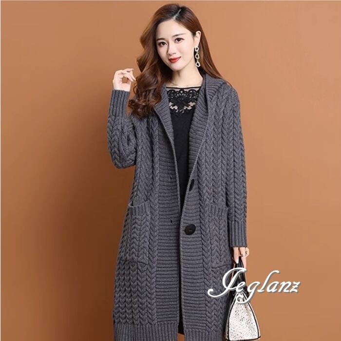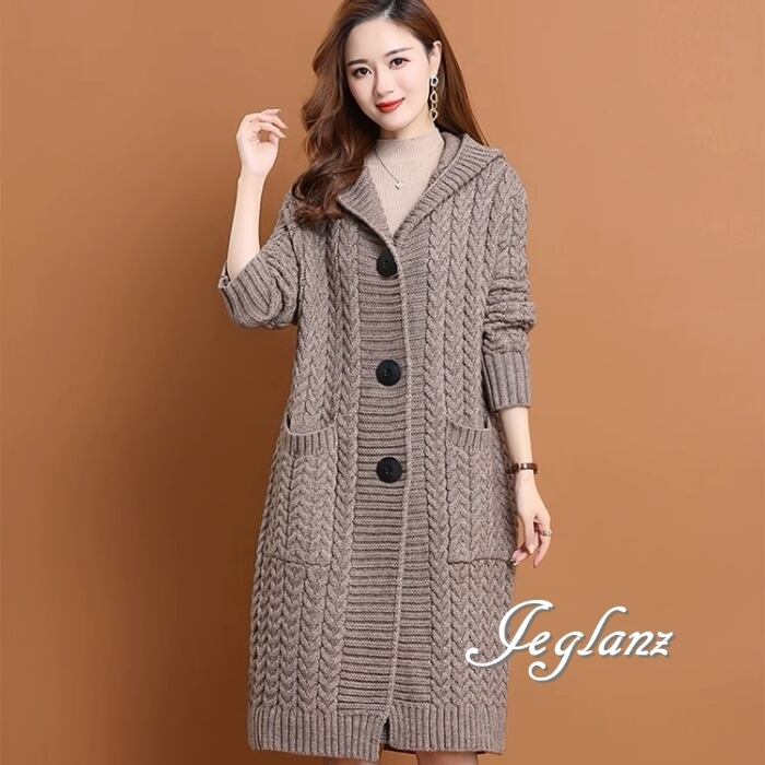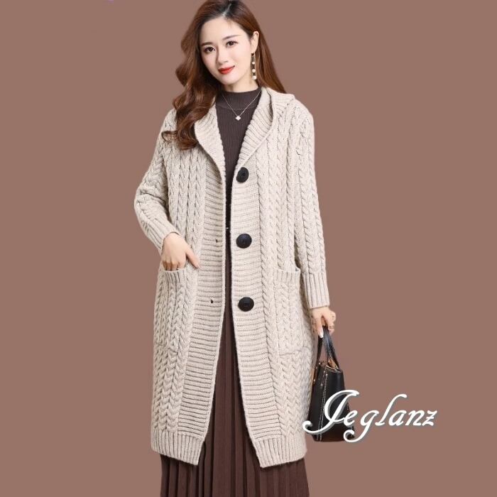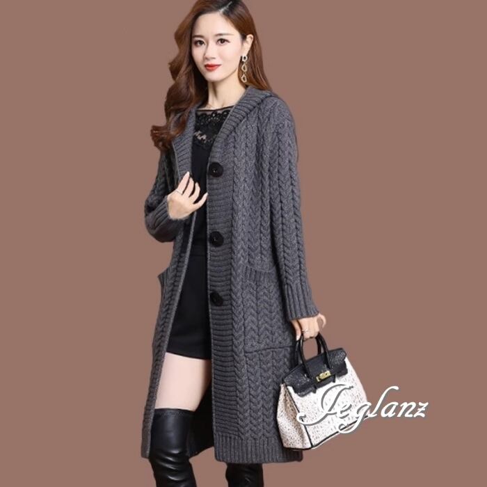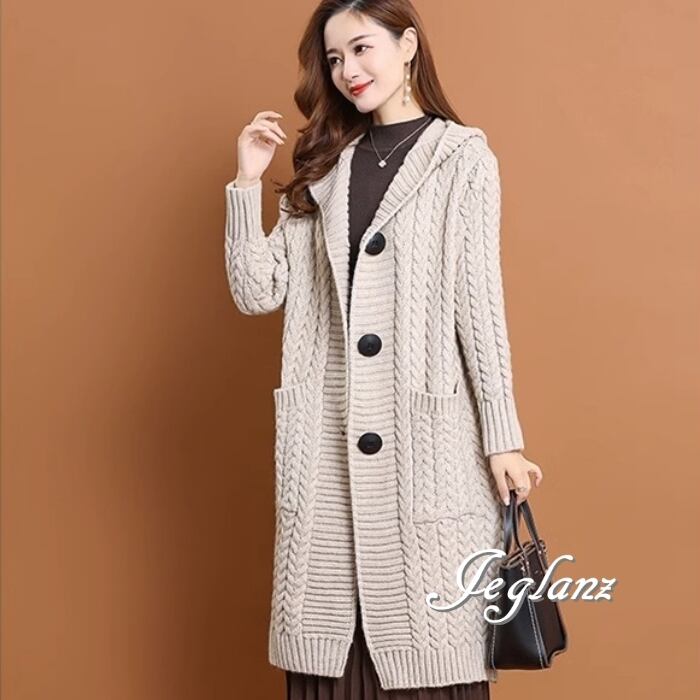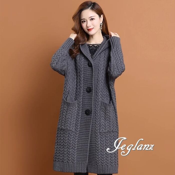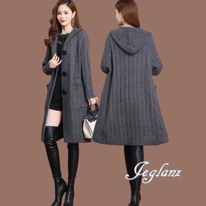 3色 ニット カーディガン フード付き 羽織り ビックボタン (MB127)τ