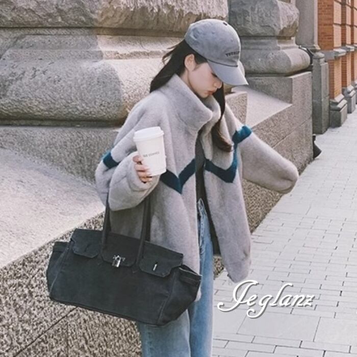 エコファ ファー ブルゾン ジャケット ジップアップ バイカラー(MB129)φ
