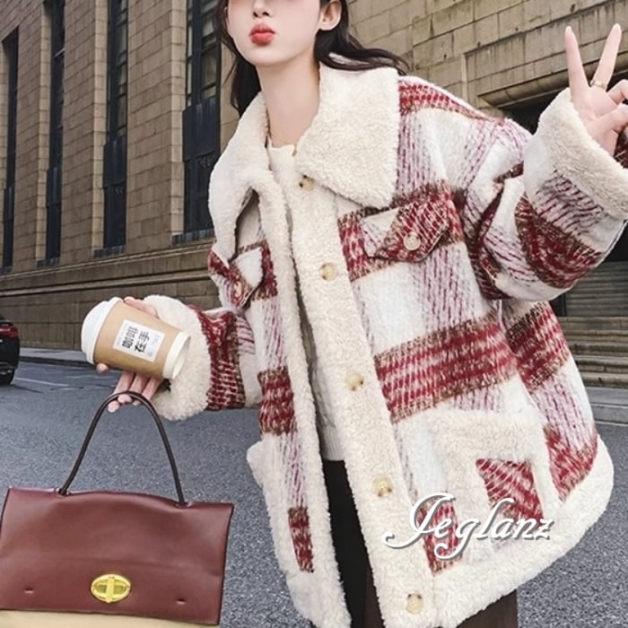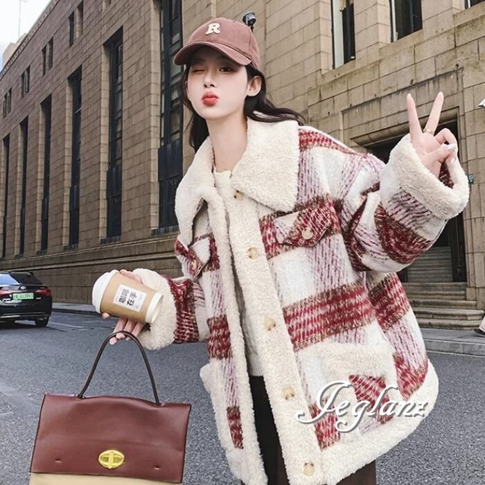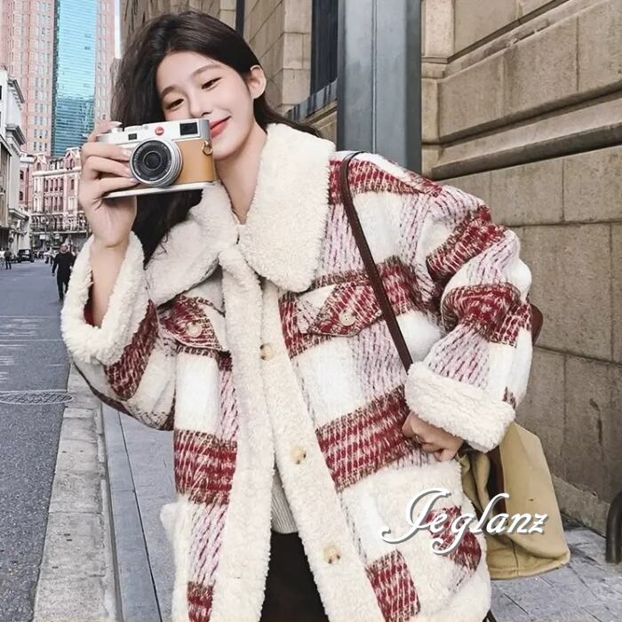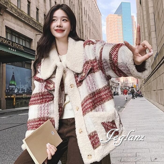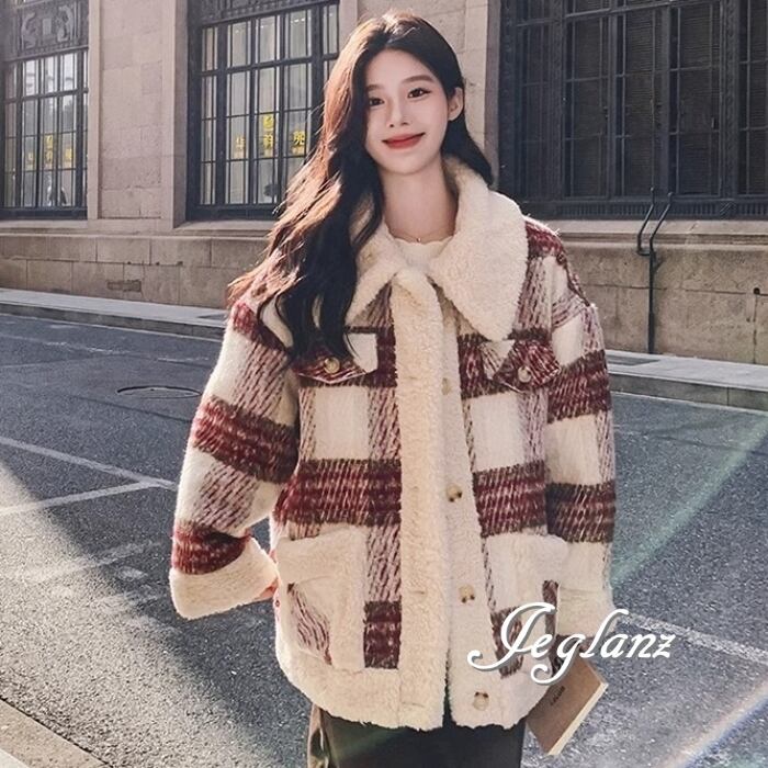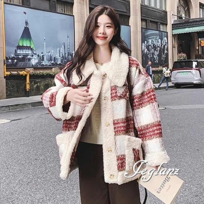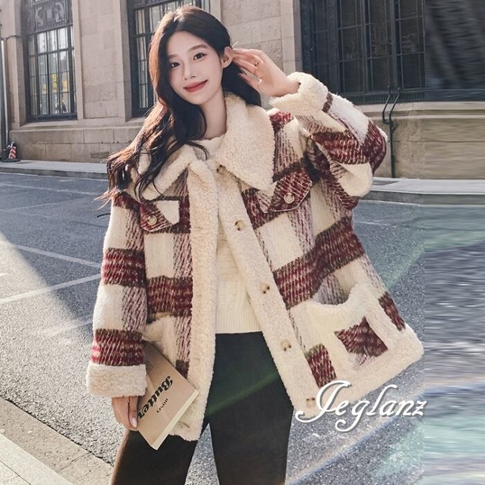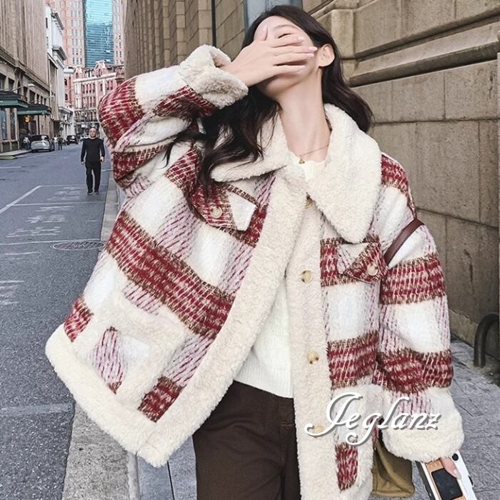 ニット ジャケット ブルゾン チェック柄 襟付き ボア カジュアル(MB130)τ