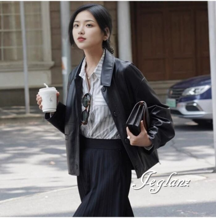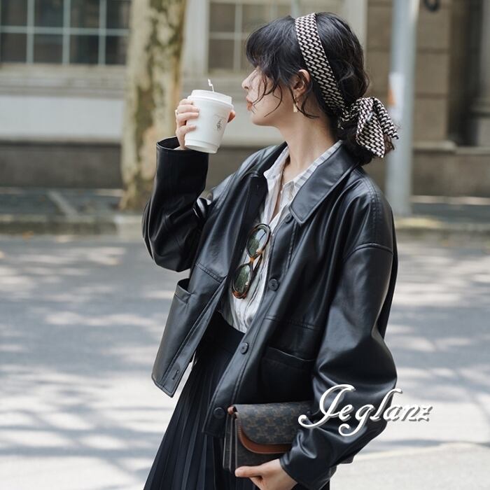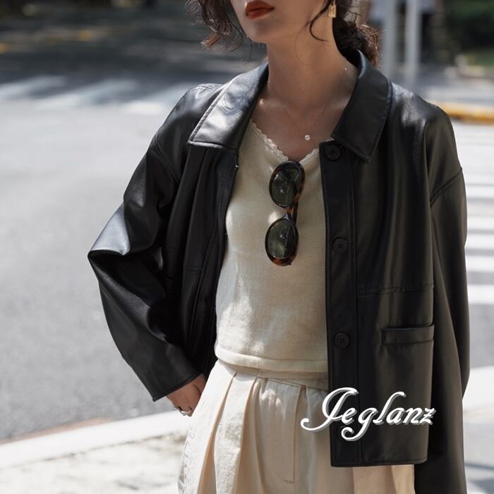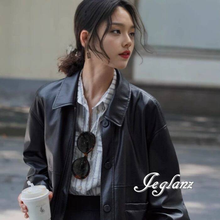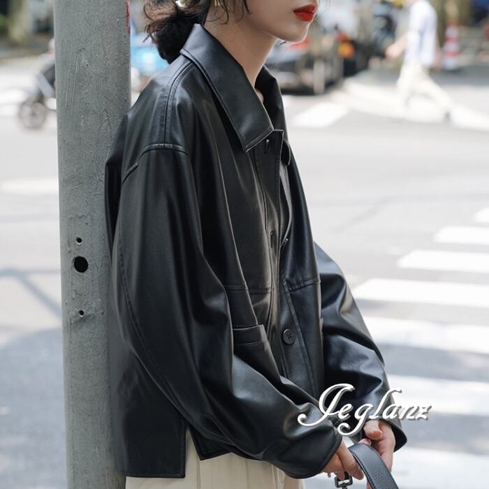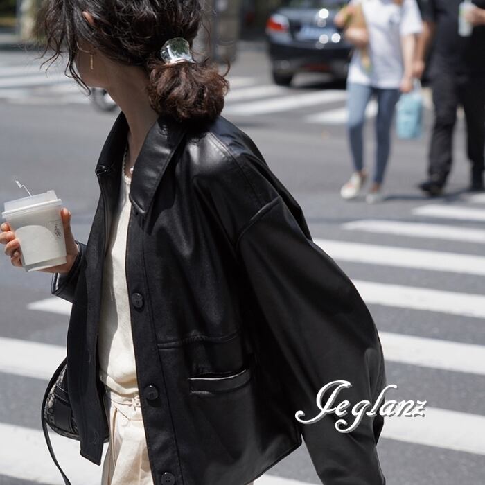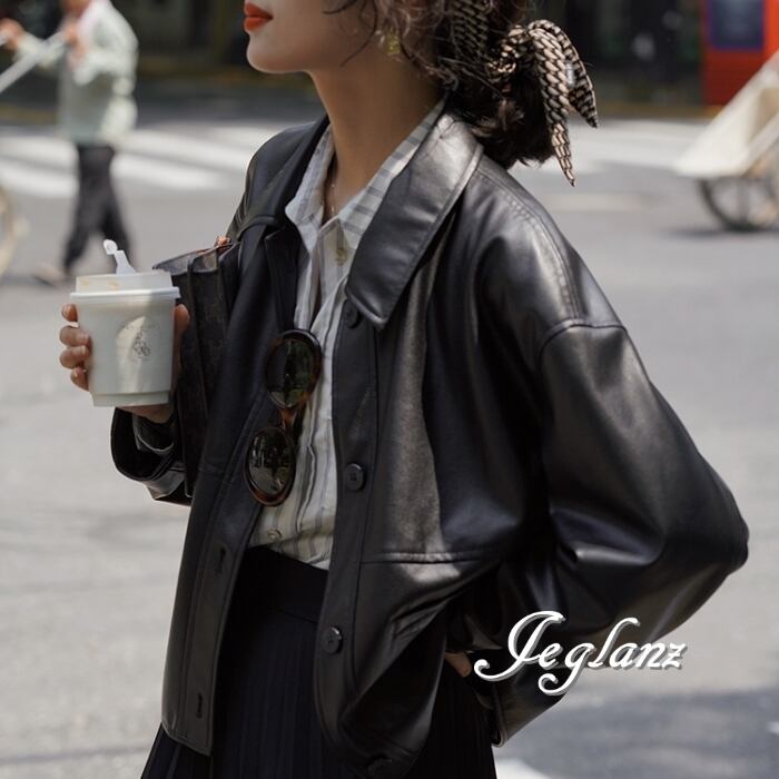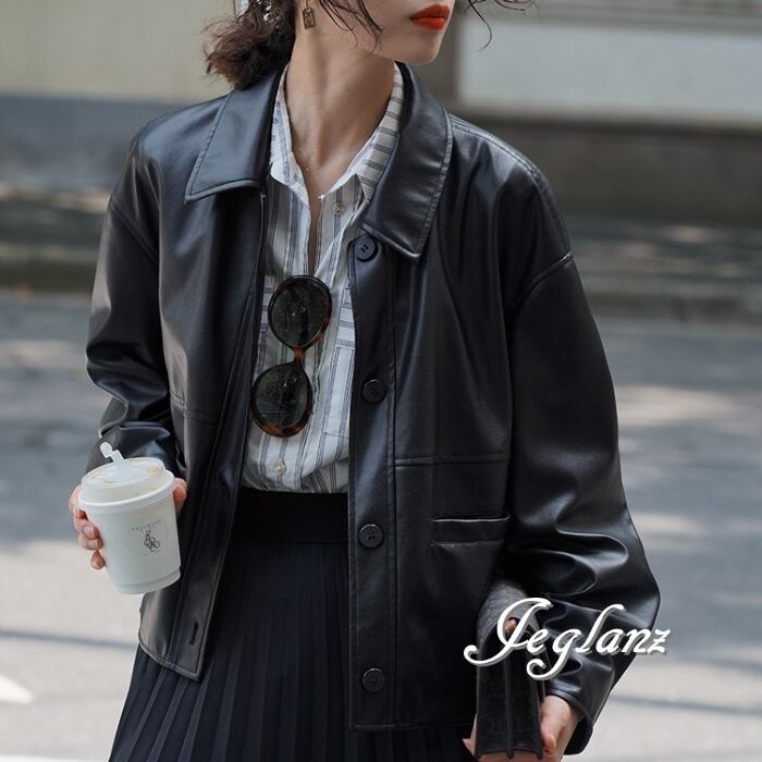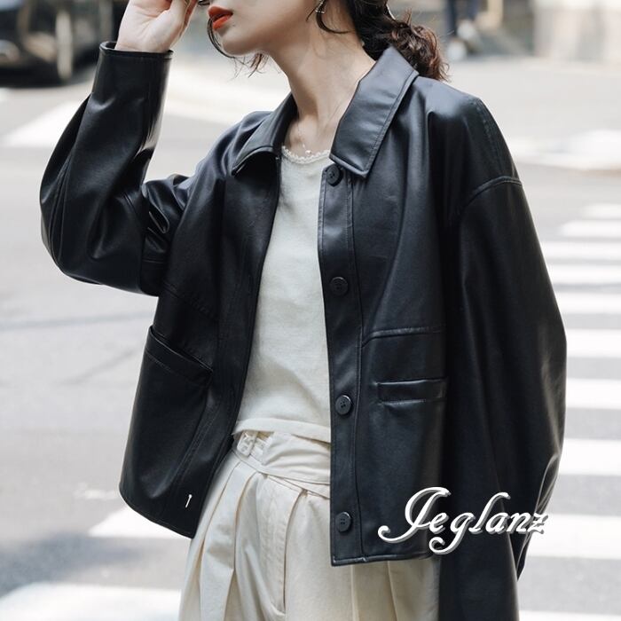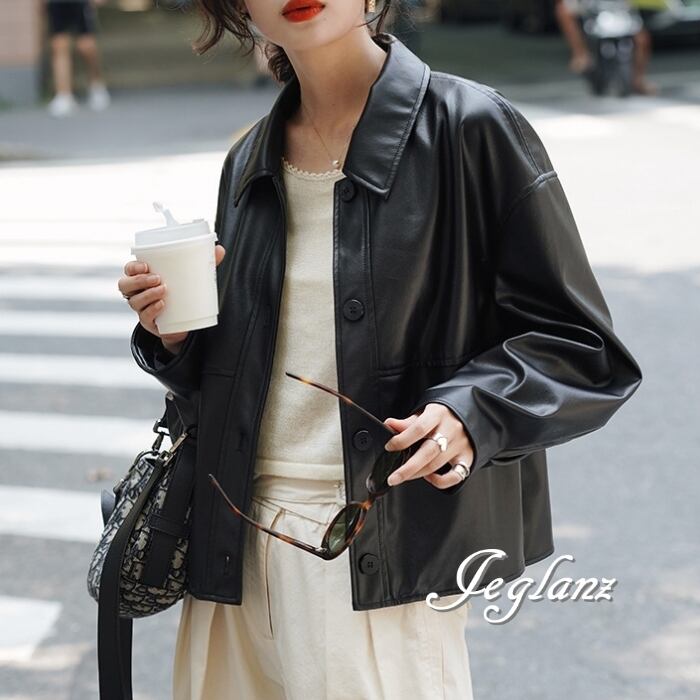 革ジャン レザー ジャケット 襟付き ドロップショルダー ボタン(MB158)τ