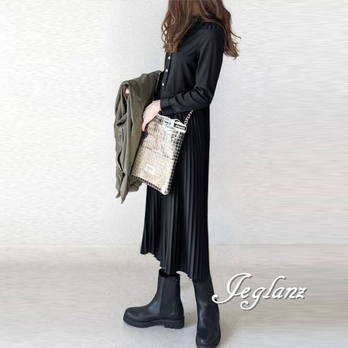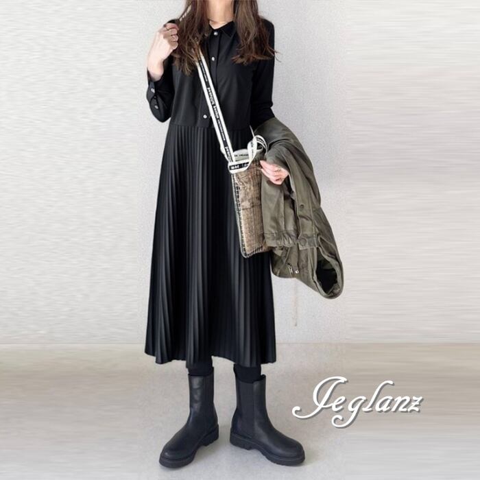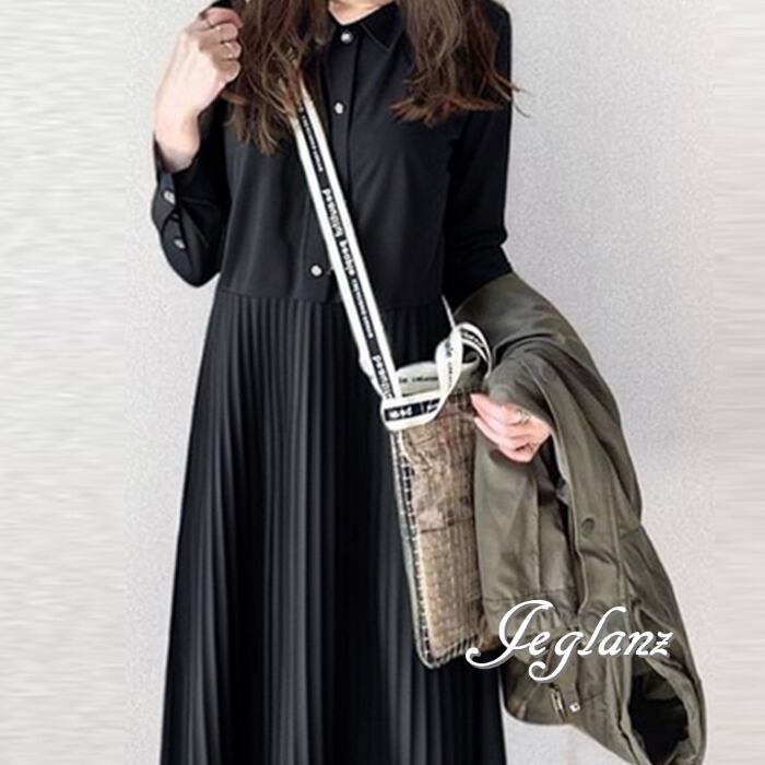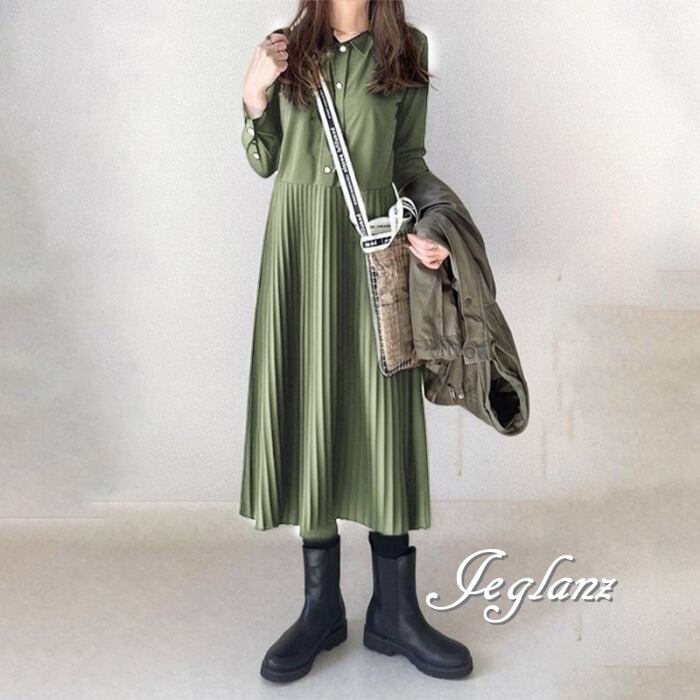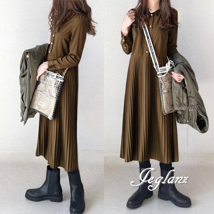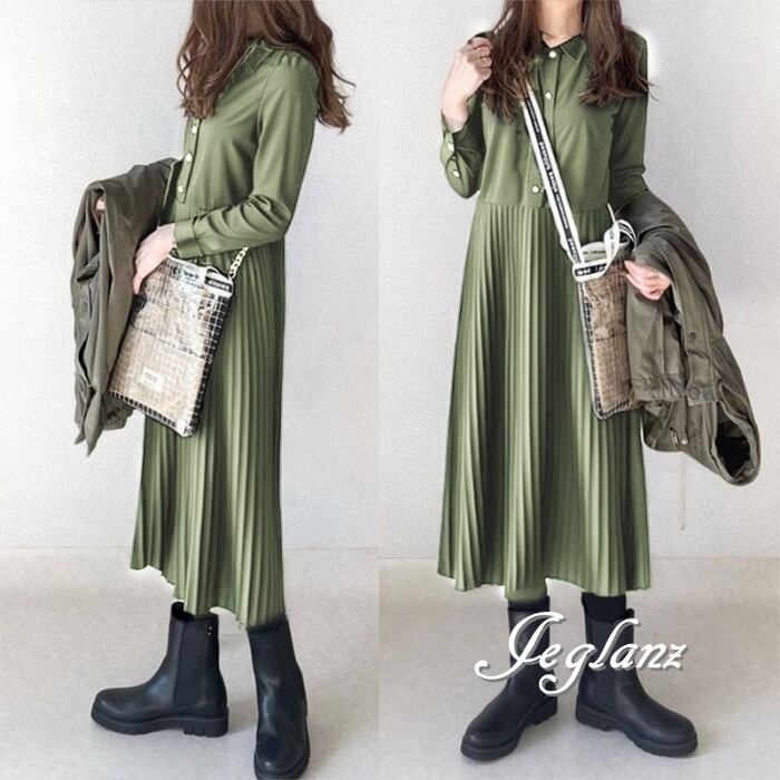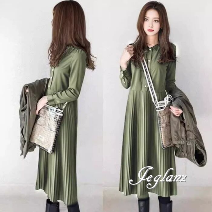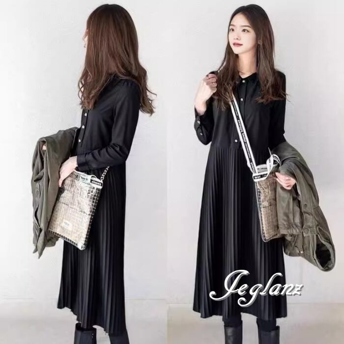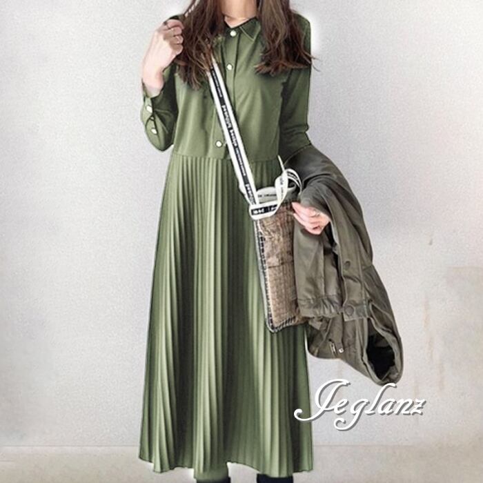 3色 シャツ ワンピース プリーツ ボタン カジュアル派 (MB167)γα