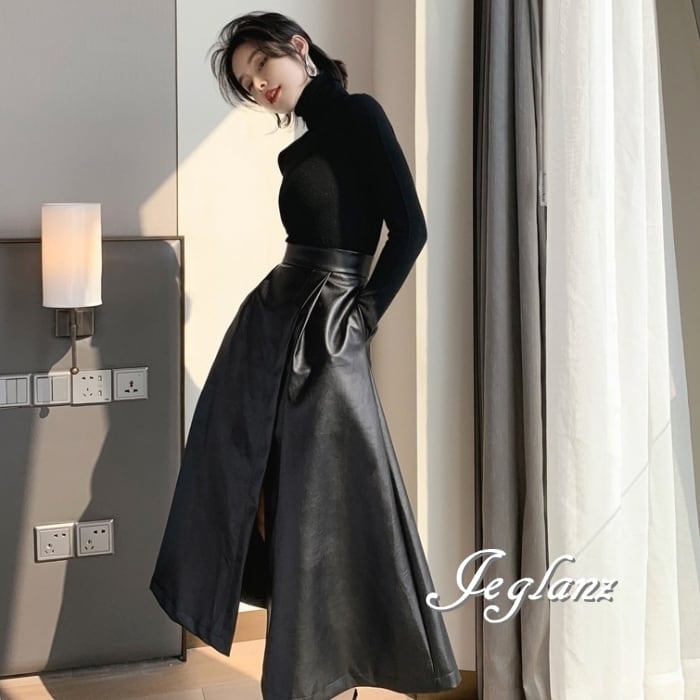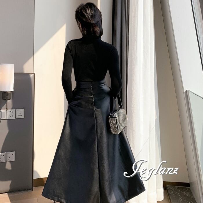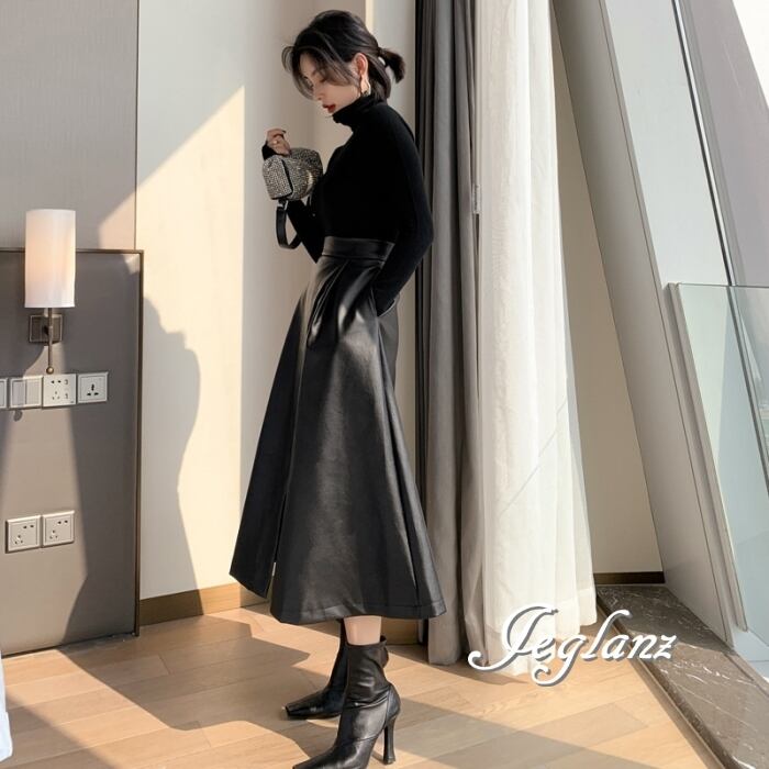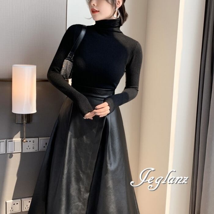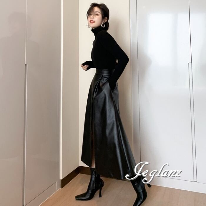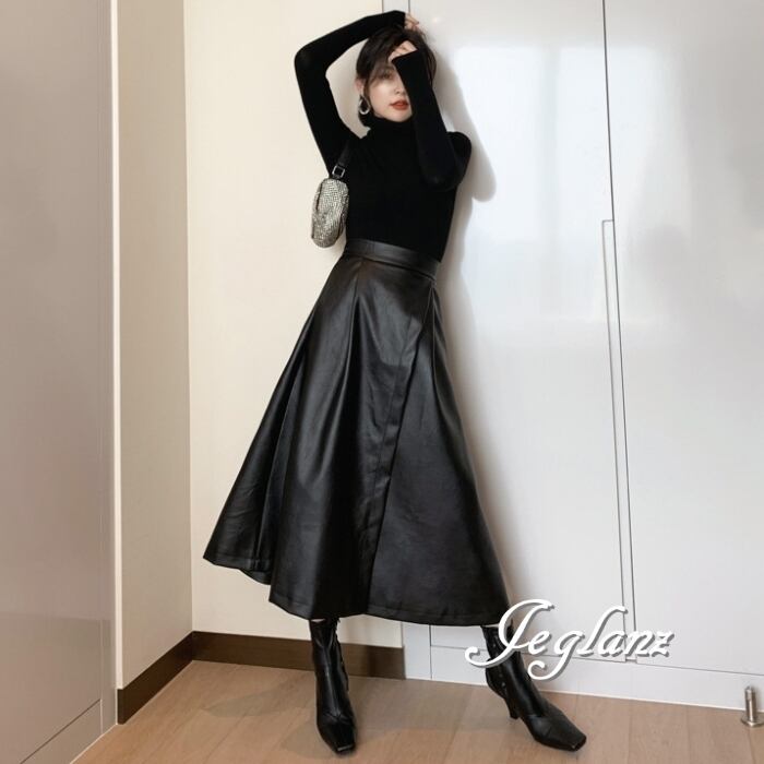 美ライン レザー Aライン ラップ風 スカート フェイク きれいめ(MB168)δ