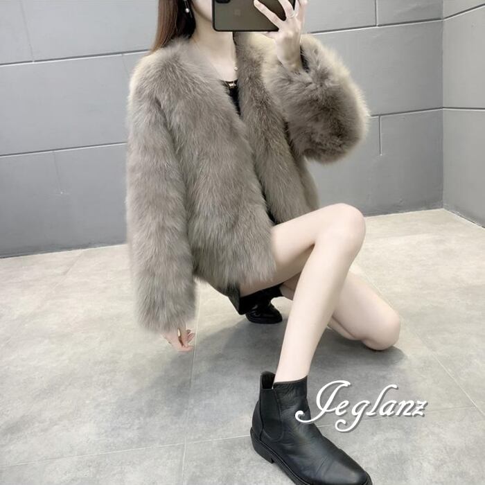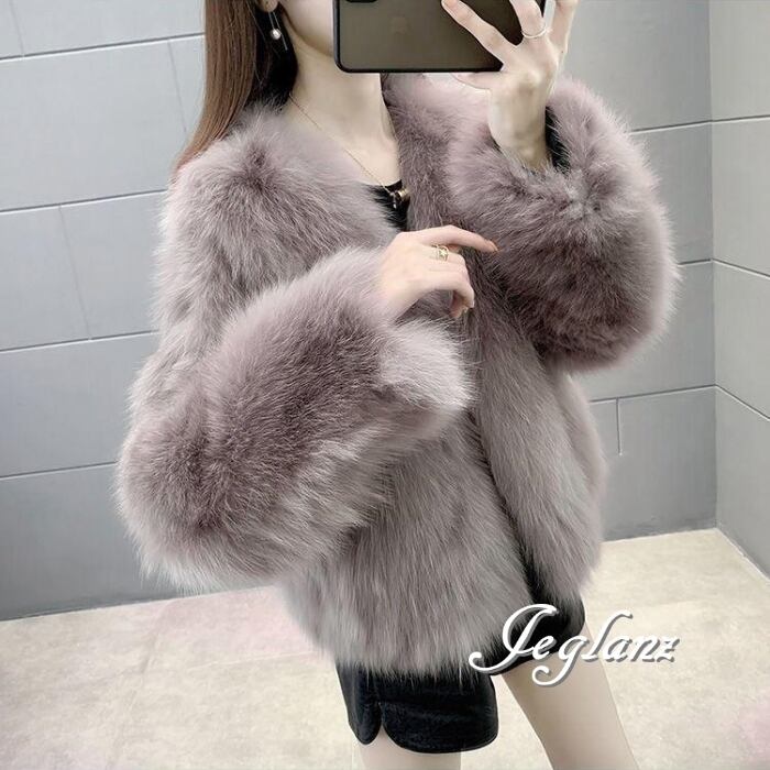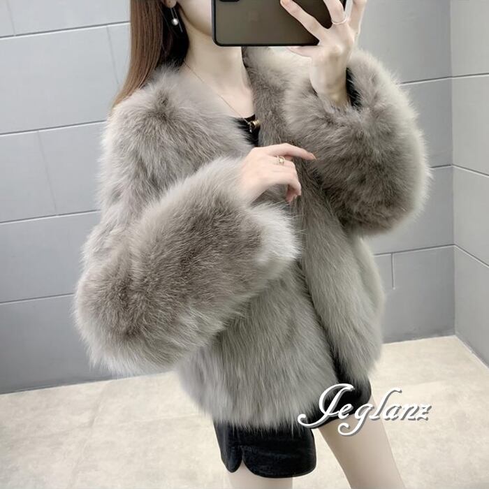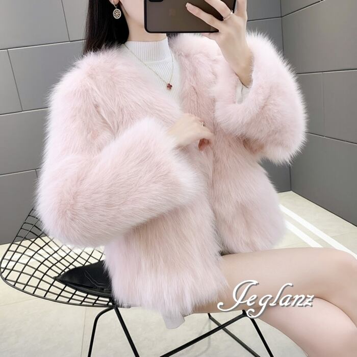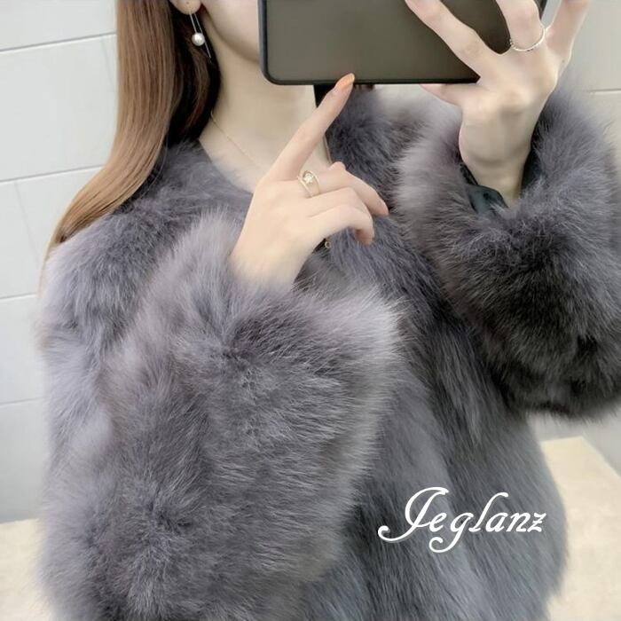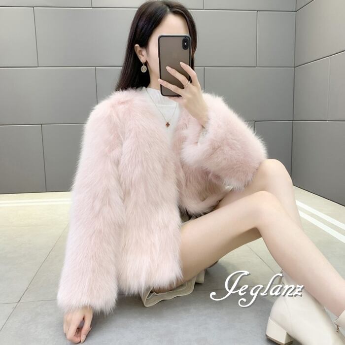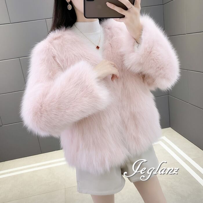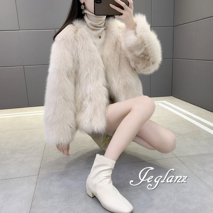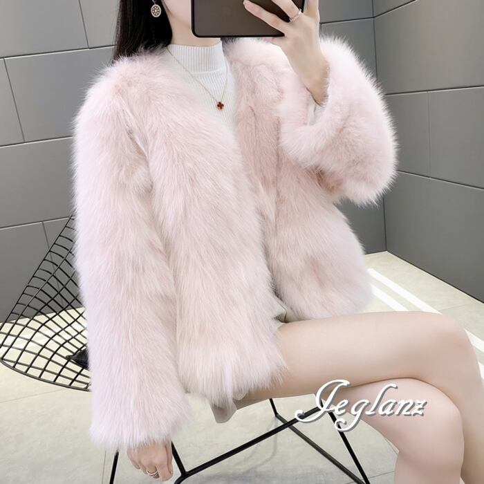 5色 ファー エコファ ジャケット ブルゾン アウター ノーボタン 着映え(MB187)φ