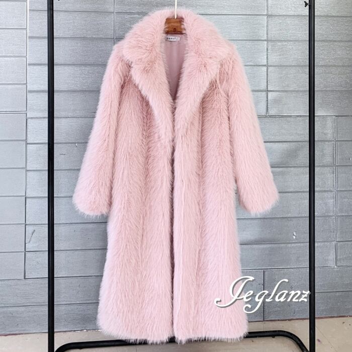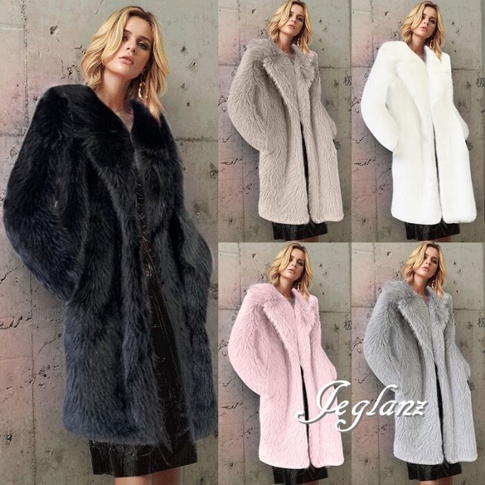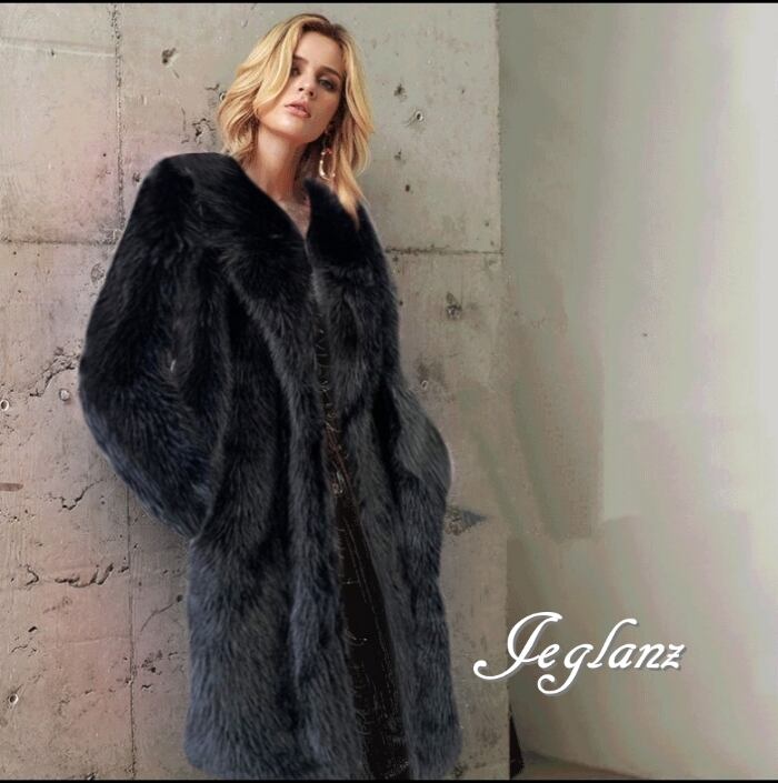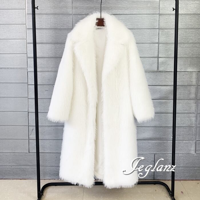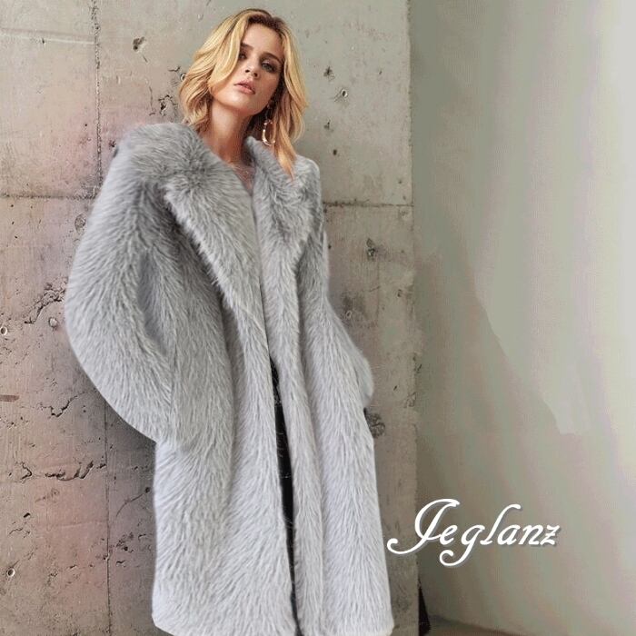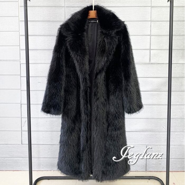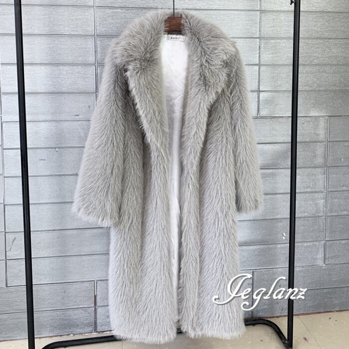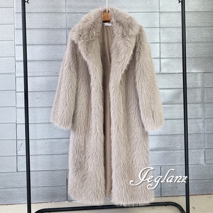 5色 エコファー ロング丈 ファーコート アウター 襟付き 着映え(MB188)φ