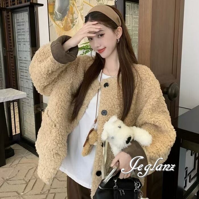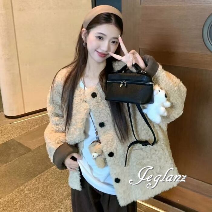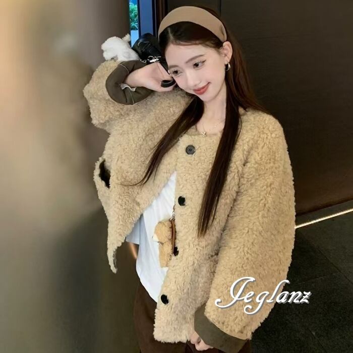 2色 エコファ ジャケット ブルゾン アウター ボタン ウォーム感(MB189)φ