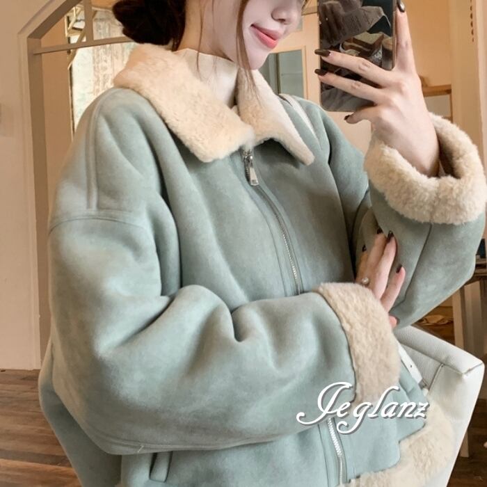 ムスタン ブルゾン ジャケット 襟付き ボア ジップ フェイク ♪(MB190)τ