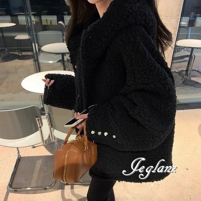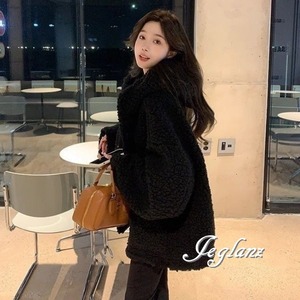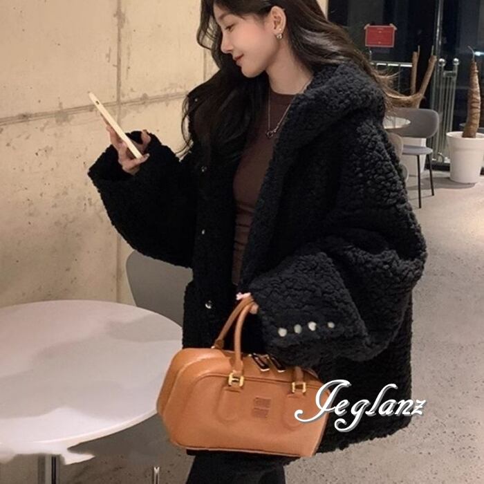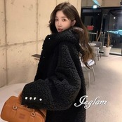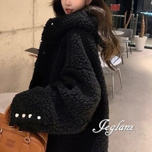 ボア ニット ジャケット ブルゾン フード付 袖ボタン ウオーム感(MB193)τ
