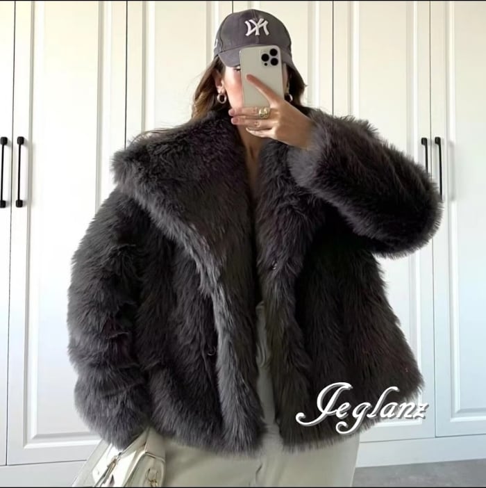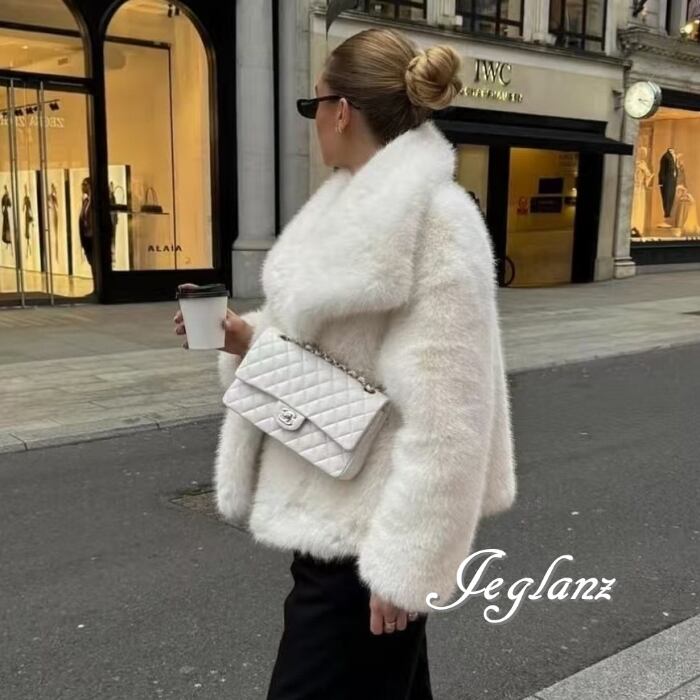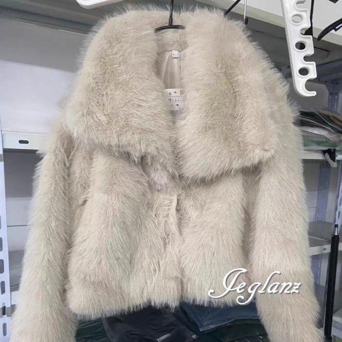 7色 ファー エコファ ジャケット ブルゾン 襟付き ファンシー ♪(MB227)φ