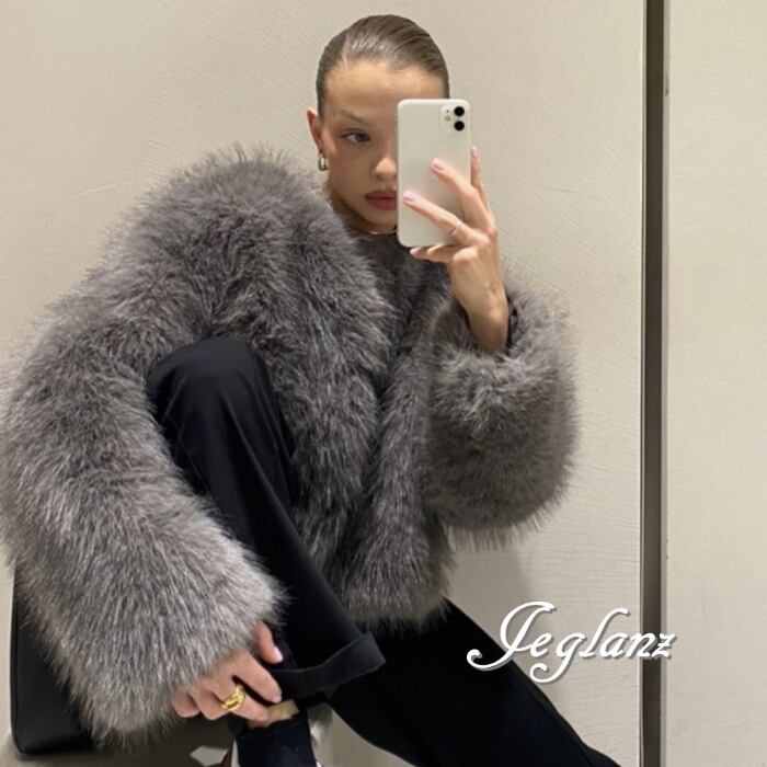 7色 ファー エコファ ジャケット ブルゾン アウター ノーカラー(MB228)φ