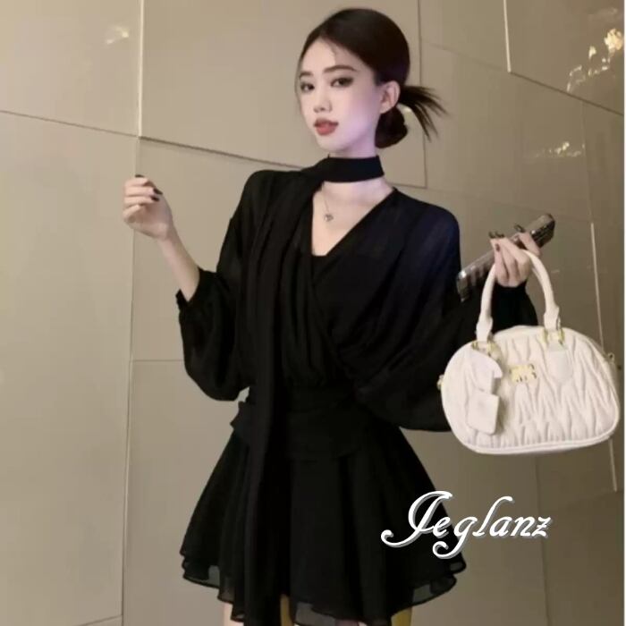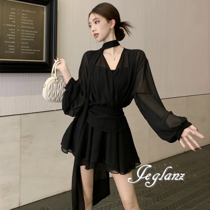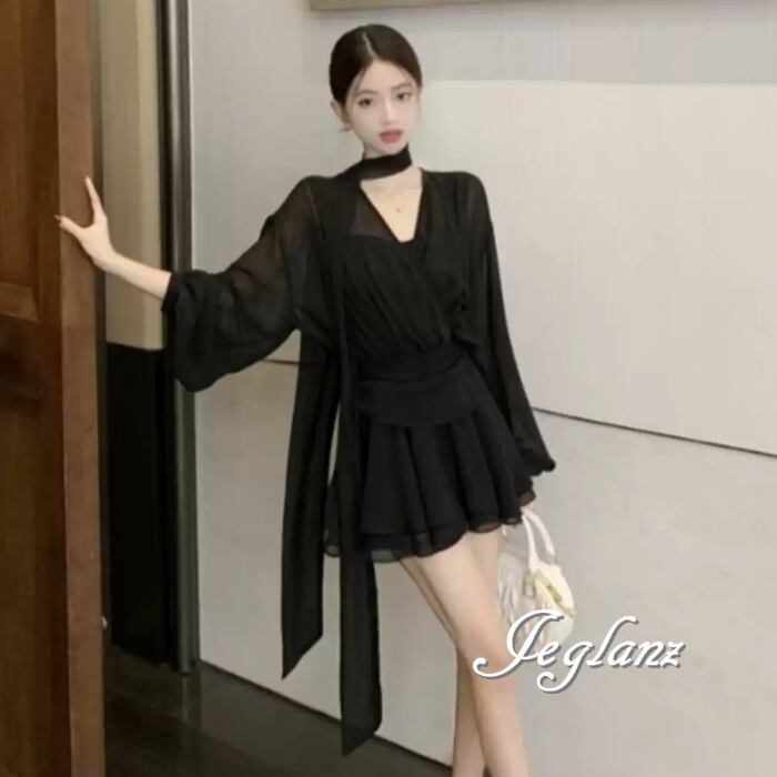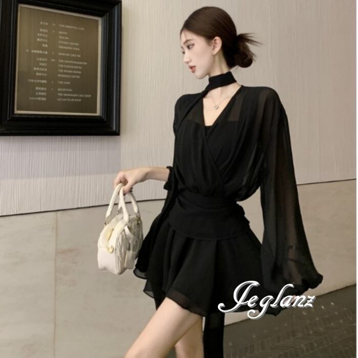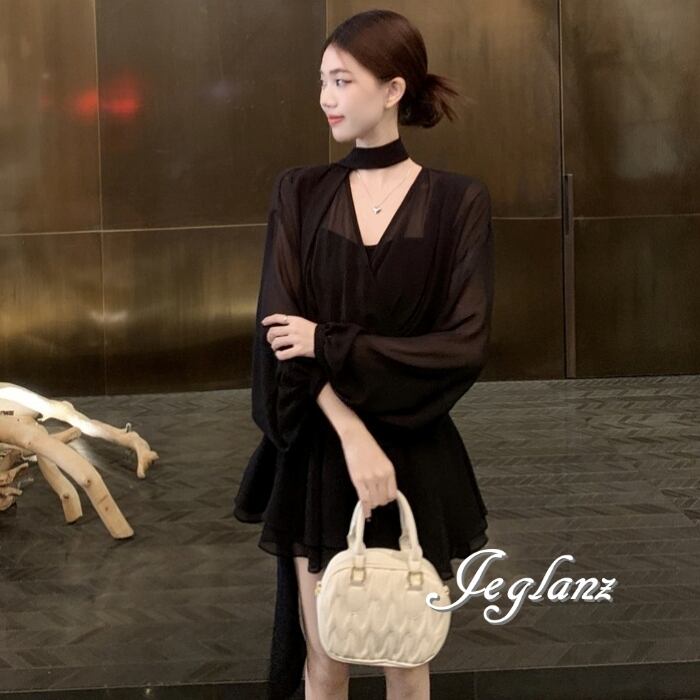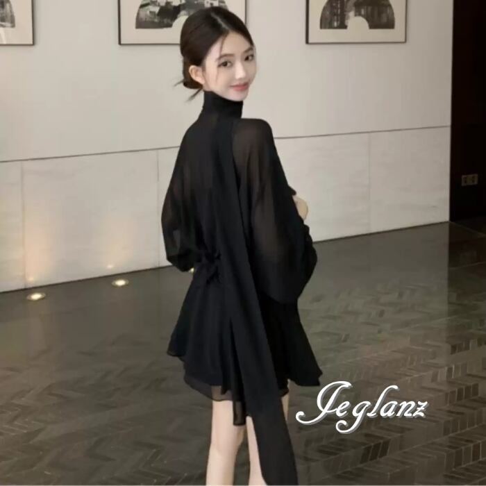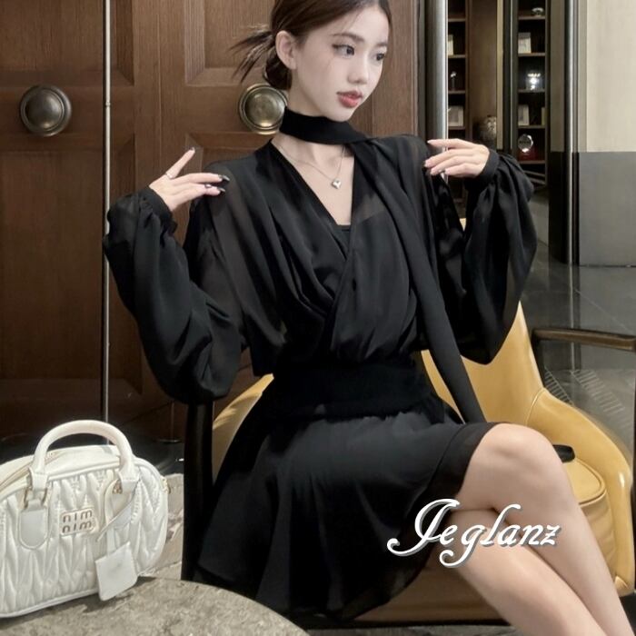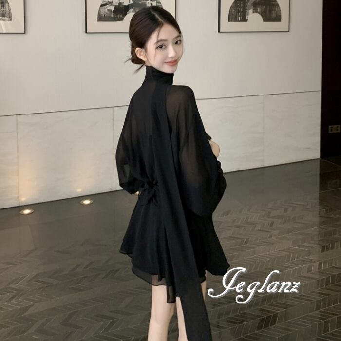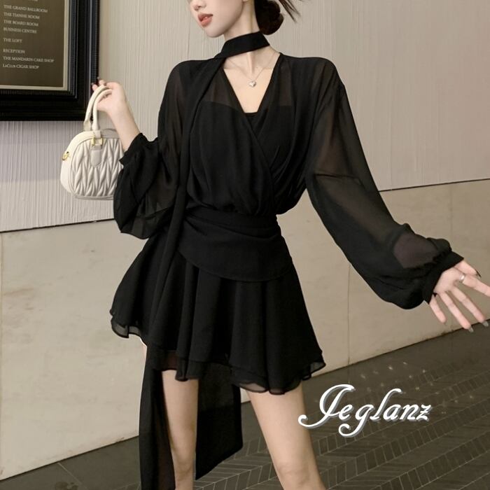 パーティ シアー ワンピース ブラック ドレス 共ベルト ミニ(MB230)ζ