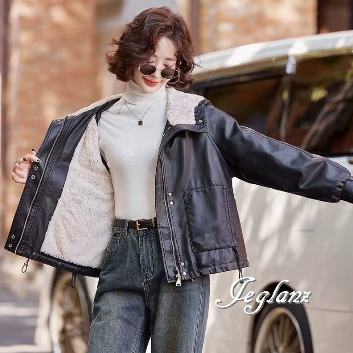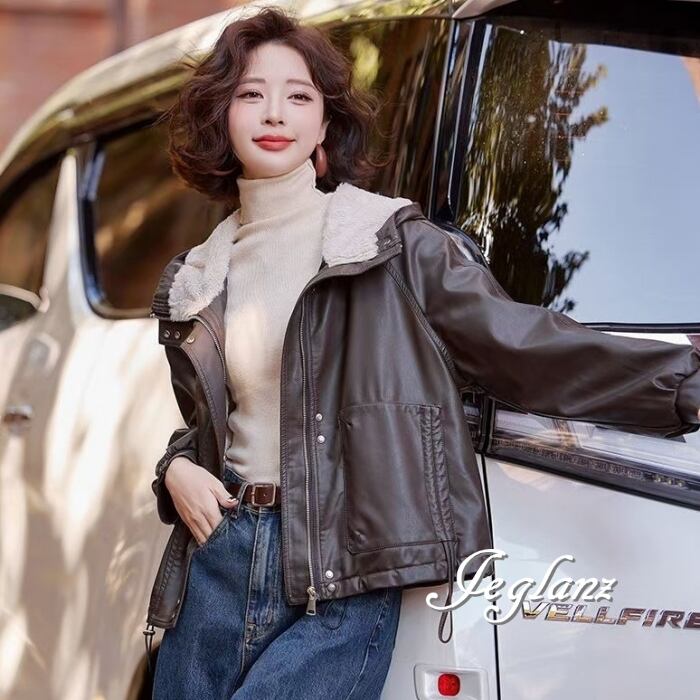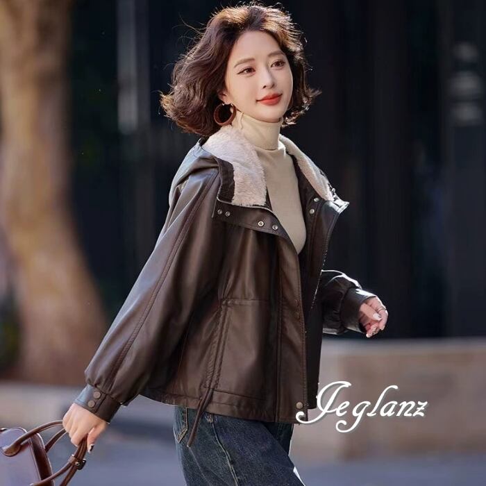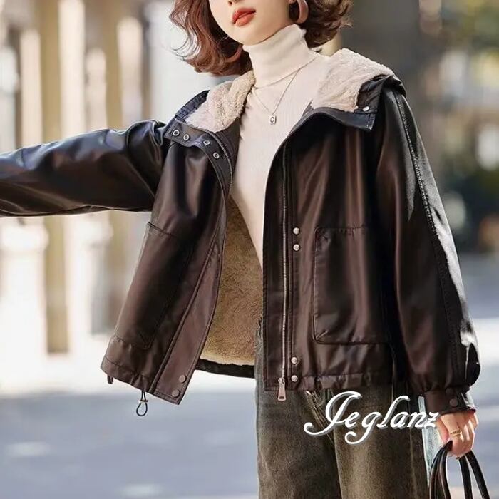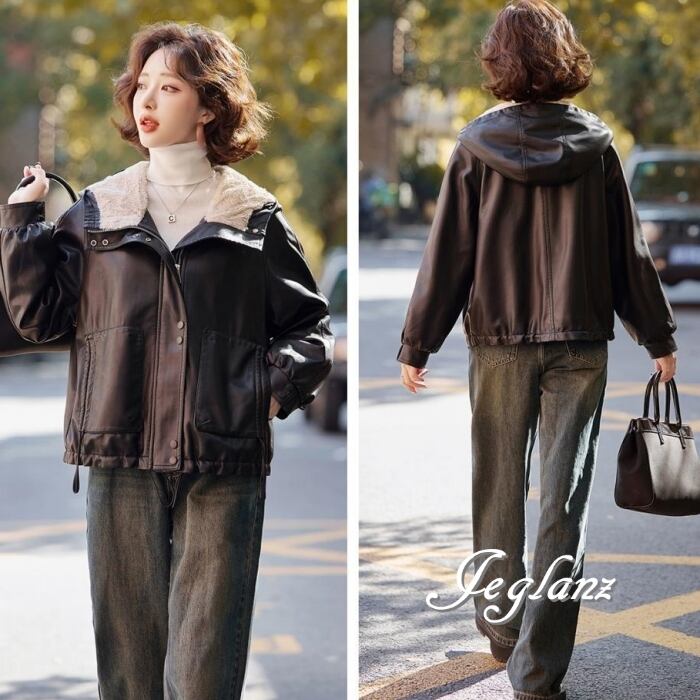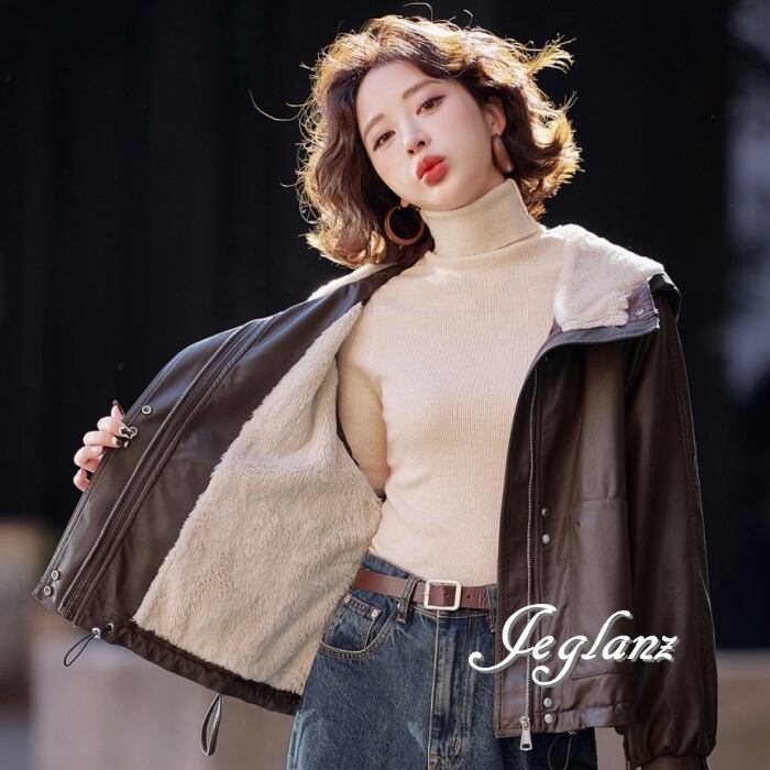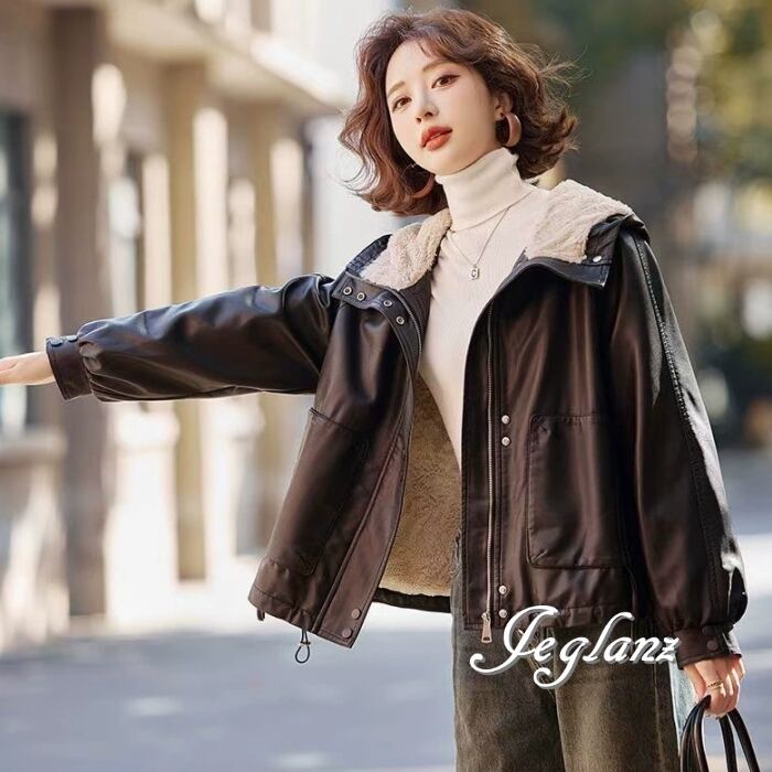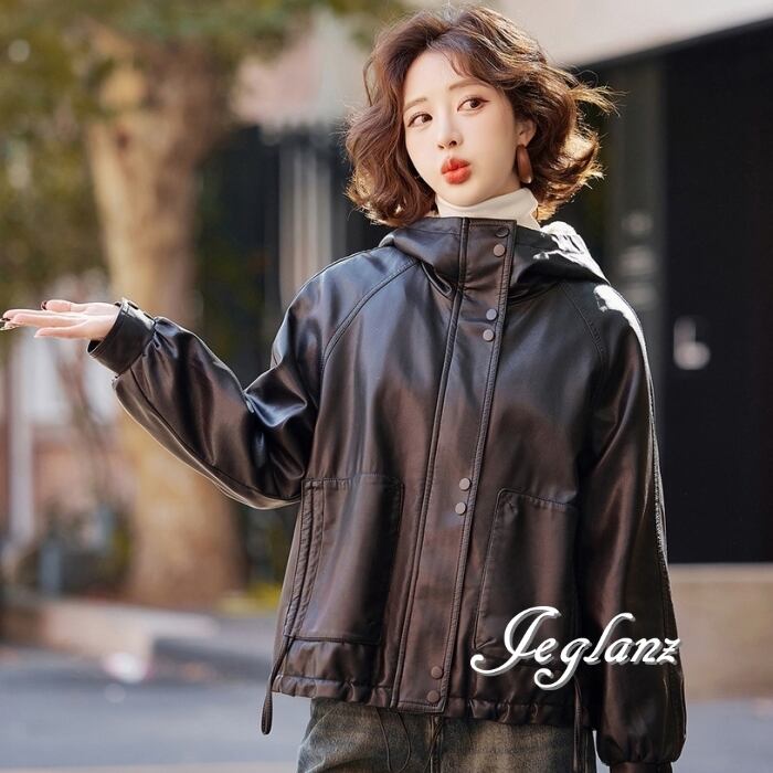 革ジャン レザー ジャケット ブルゾン フード インナーボア 2色(MB248)τ