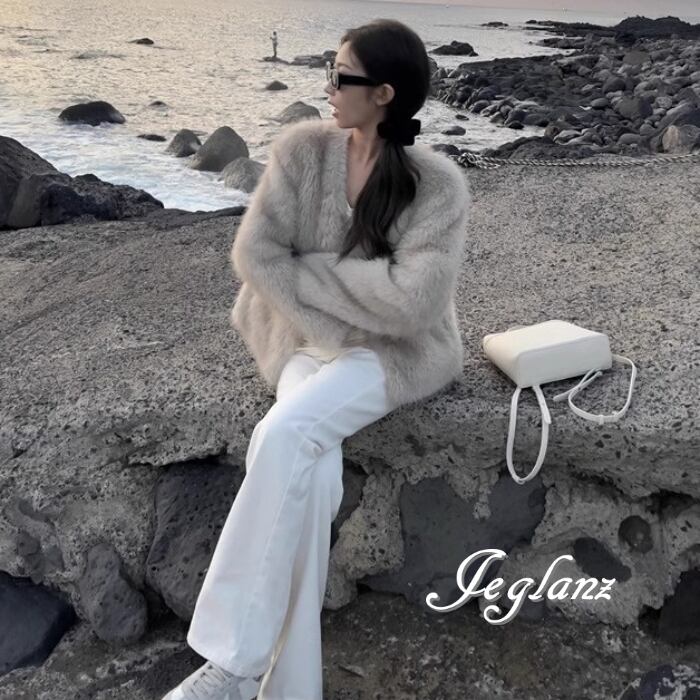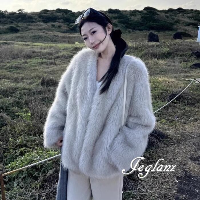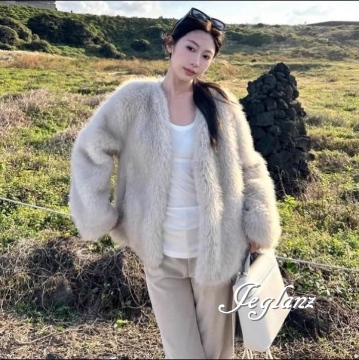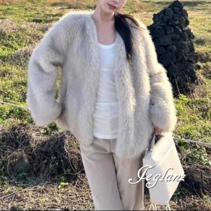 ファー エコファ ジャケット コート ブルゾン ノーカラー 着映え(MB256)φ