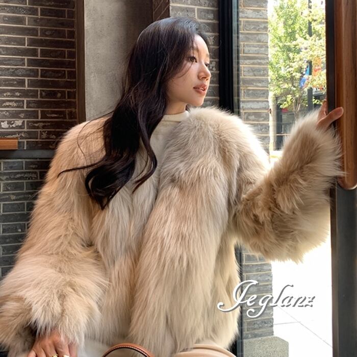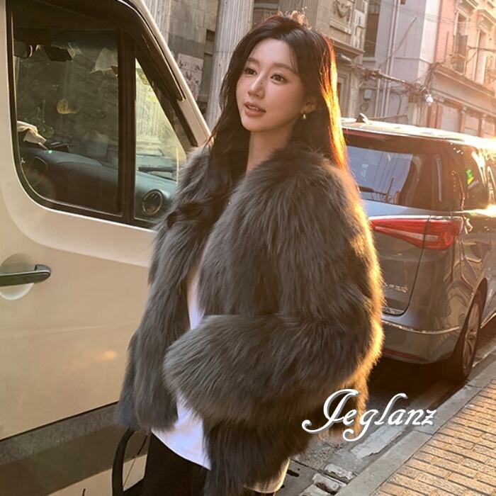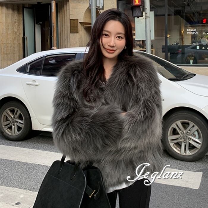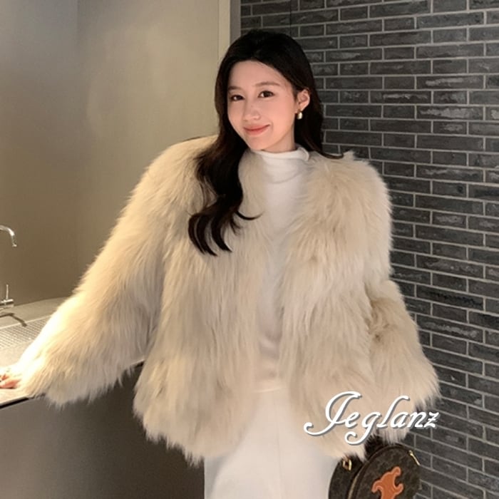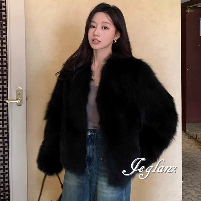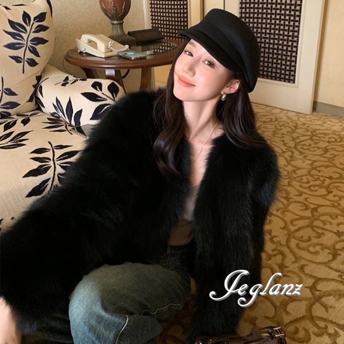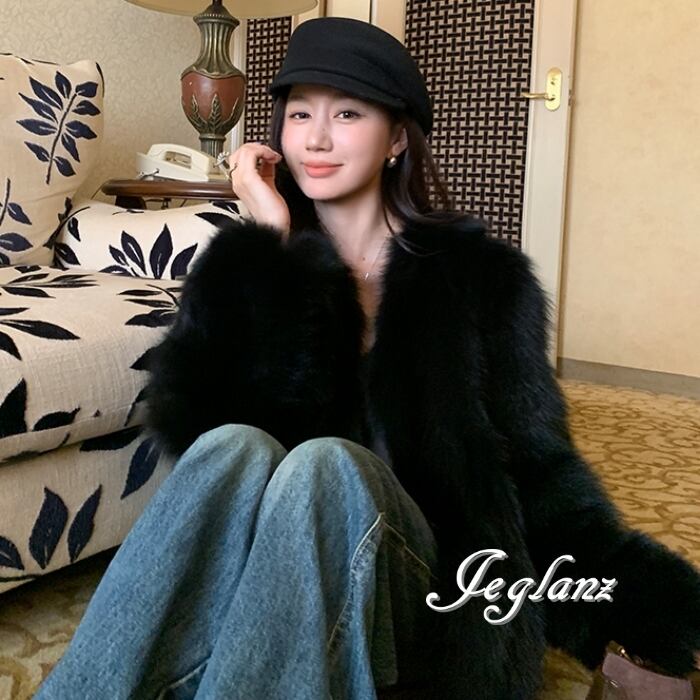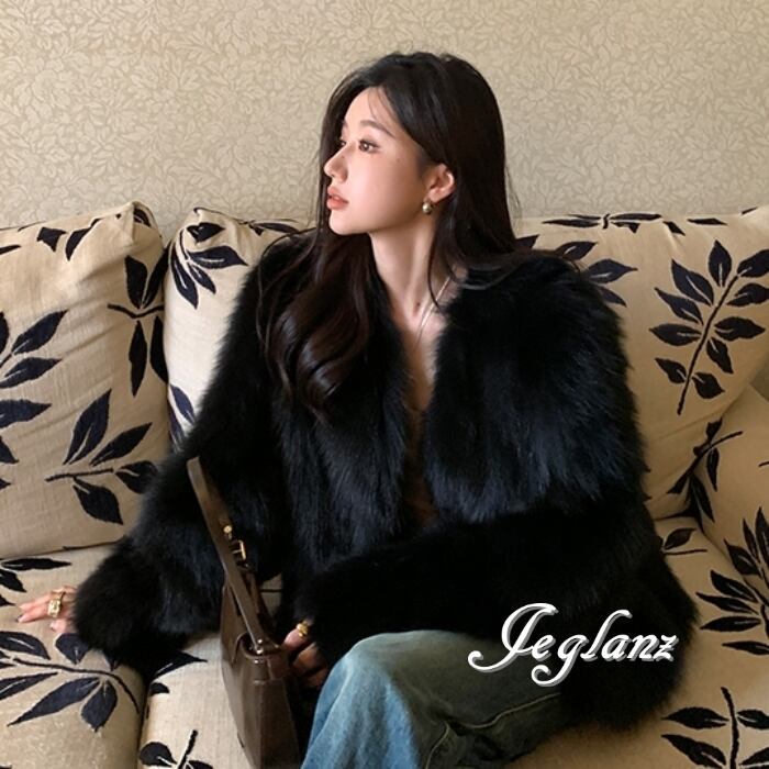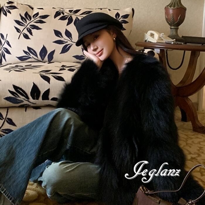 3色 ファー エコファ ジャケット ブルゾン Vネック ファンシー(MB258)φ