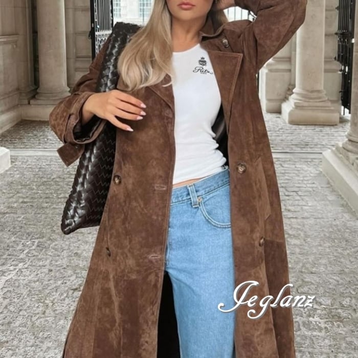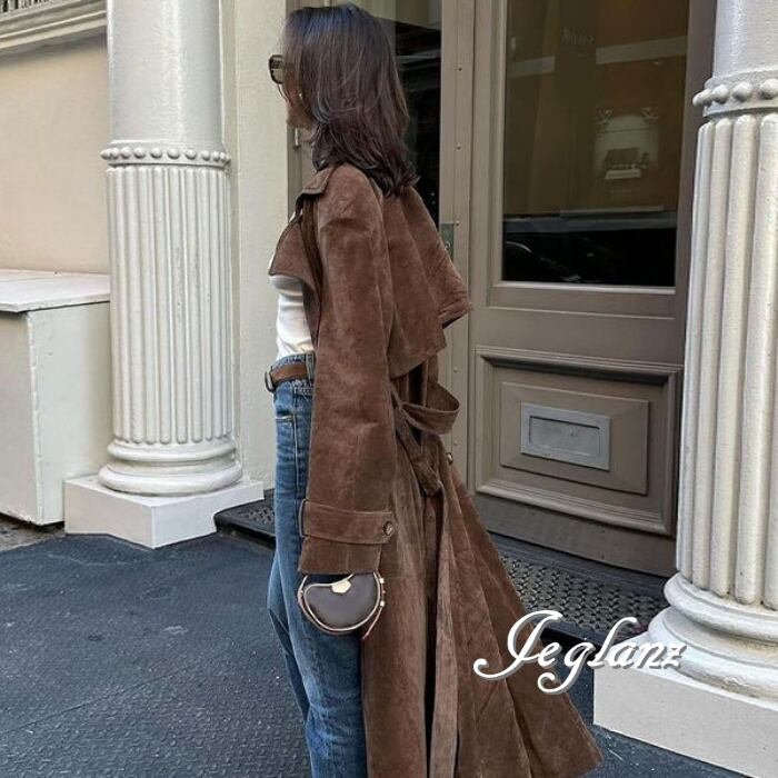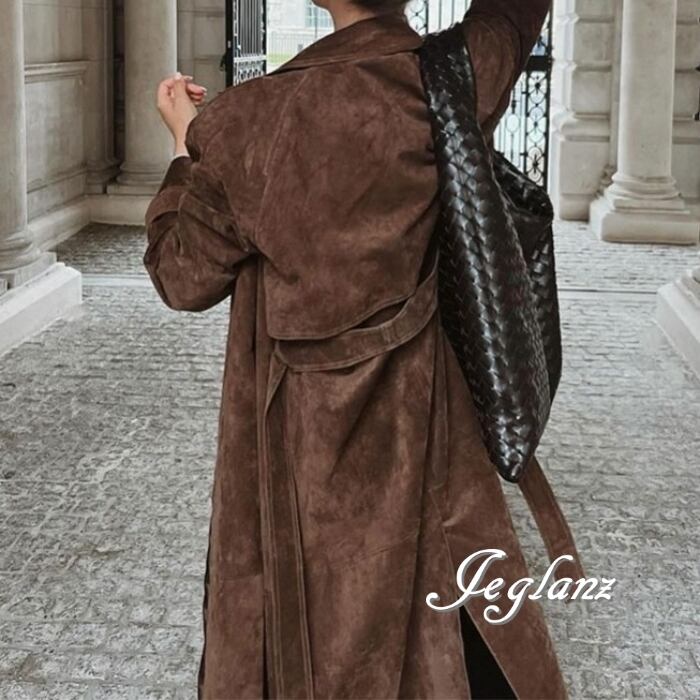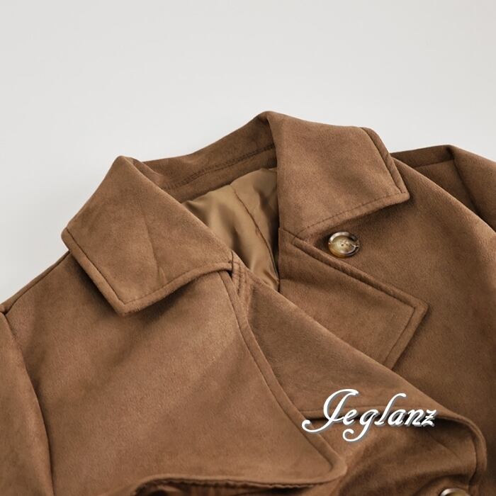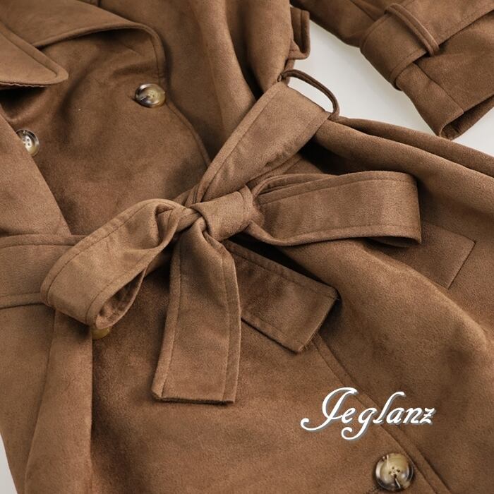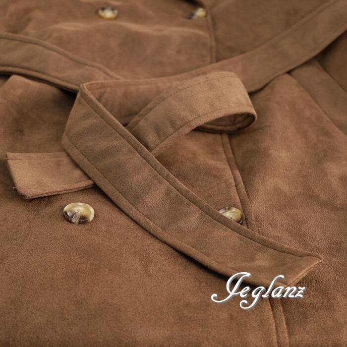 レザーコート ガウン チェスター 襟付き スエード調 共ベルト ♪(MB277)τ