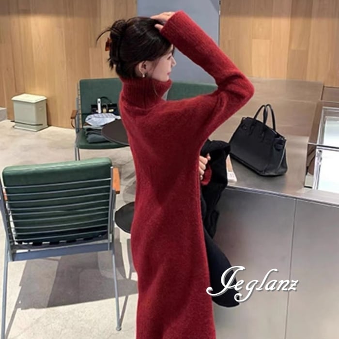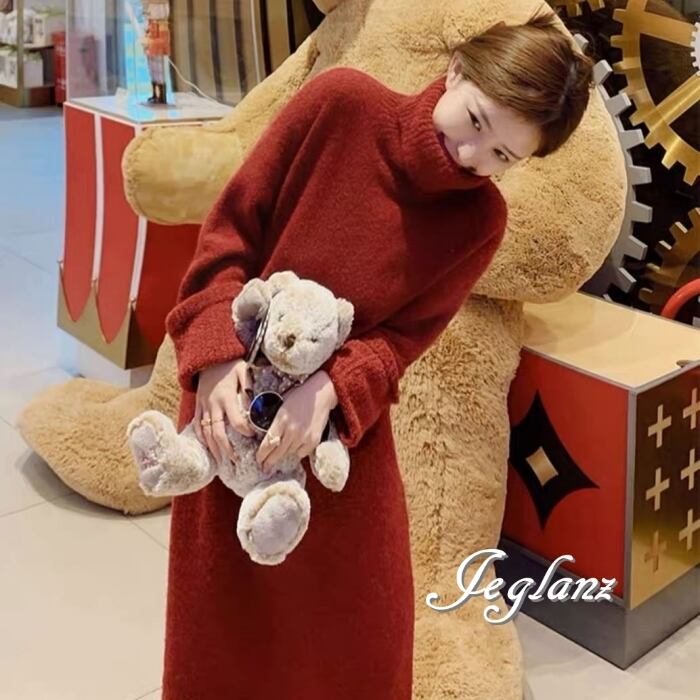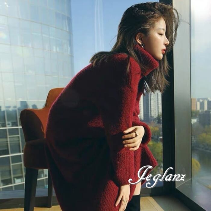 モヘア ニット ワンピース タートルネック カジュアル派 ♪(MB288)δ