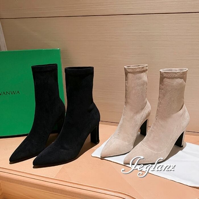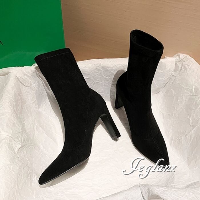 2色 ミドル ブーツ ヒール スエード調 フェイクレザー 高さ 2パターン(MB306)ω