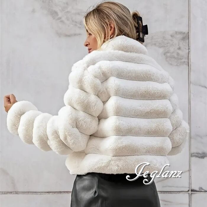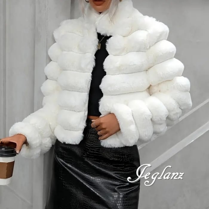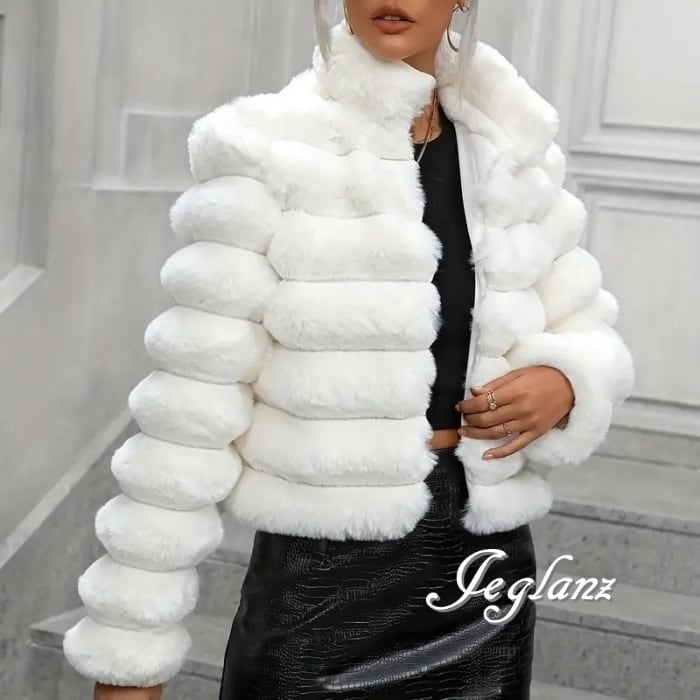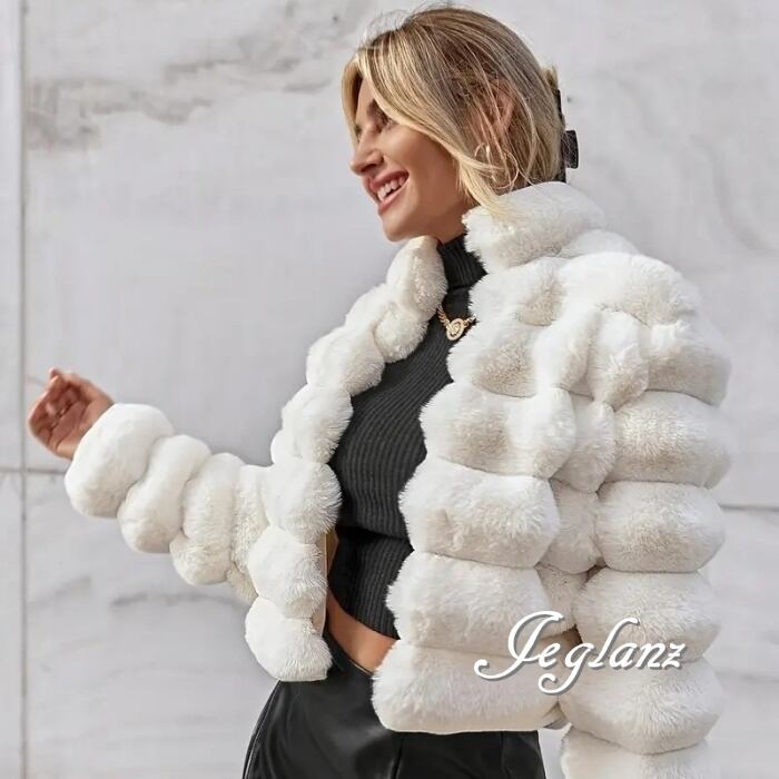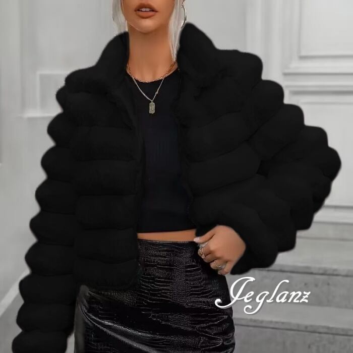 4色 ファー エコファ コート 短め丈 スタンドカラー 着映え(MB410)φ