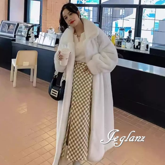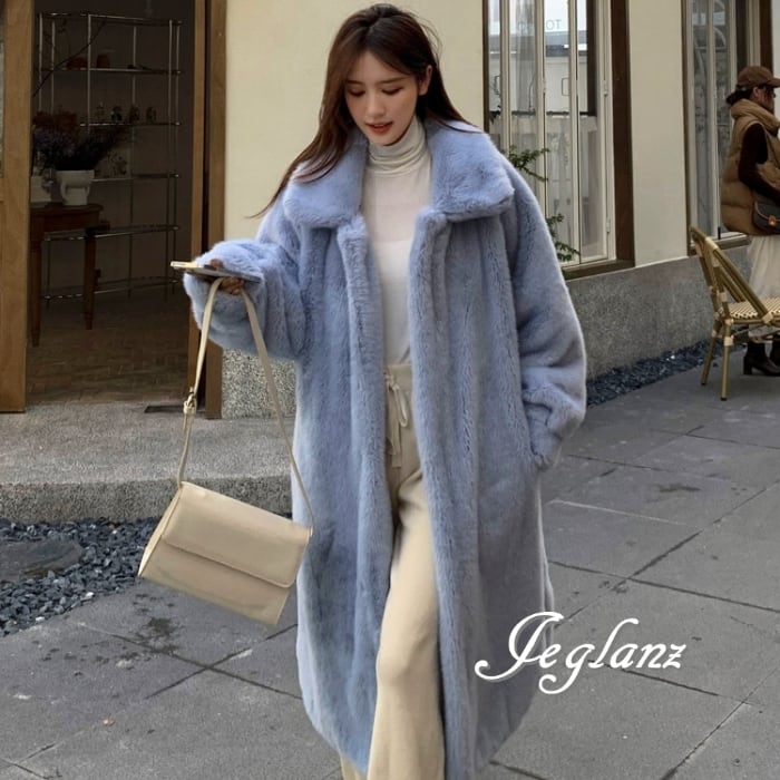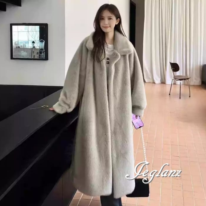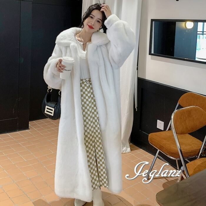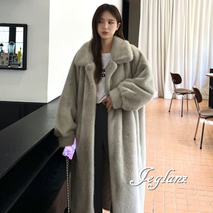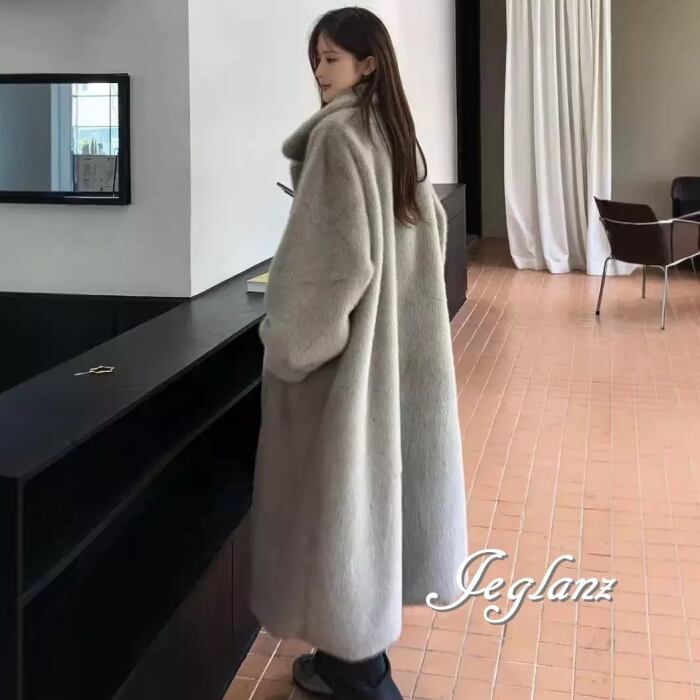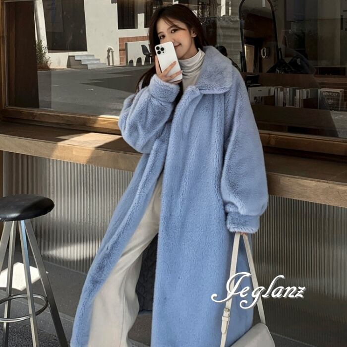 3色 ファー エコファ ロング コート アウター 襟付き ポケット(MB419)φ