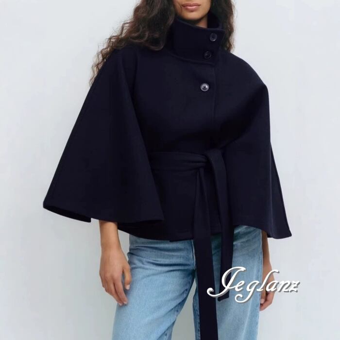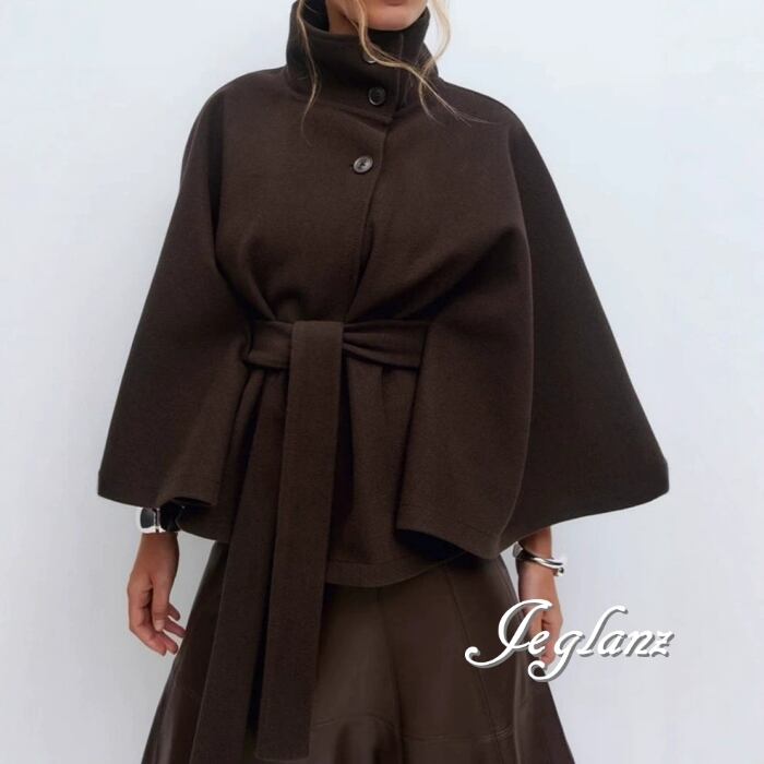5色 ニット ジャケット コート スタンドカラー 共ベルト ボタン(MB430)τ
