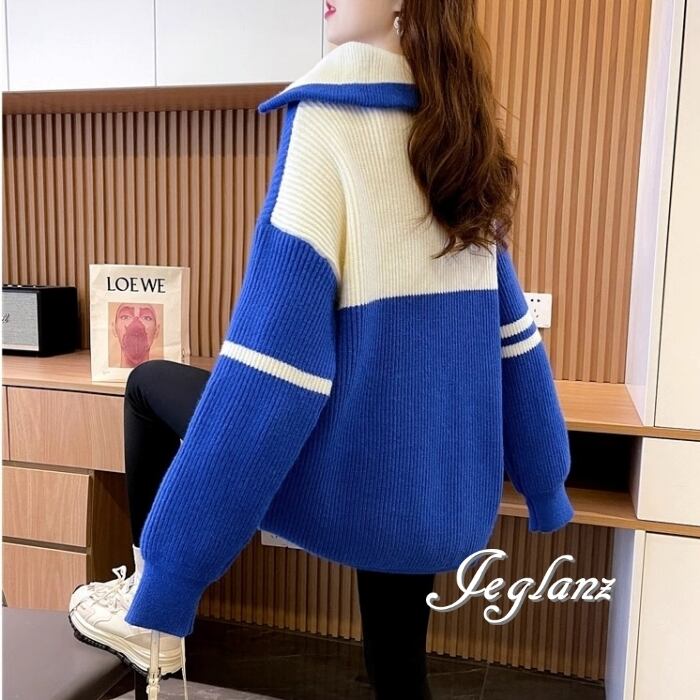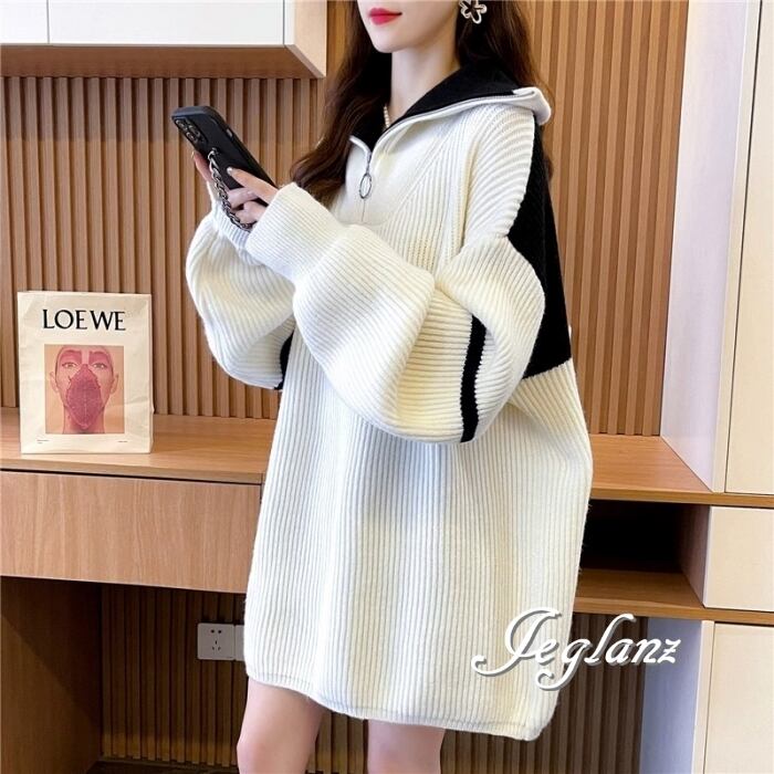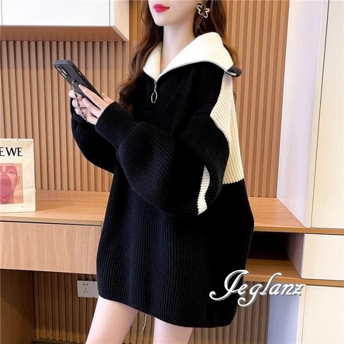 3色 バイカラー ニット チュニック ワンピース ハーフ ジップ ♪(MB436)γα