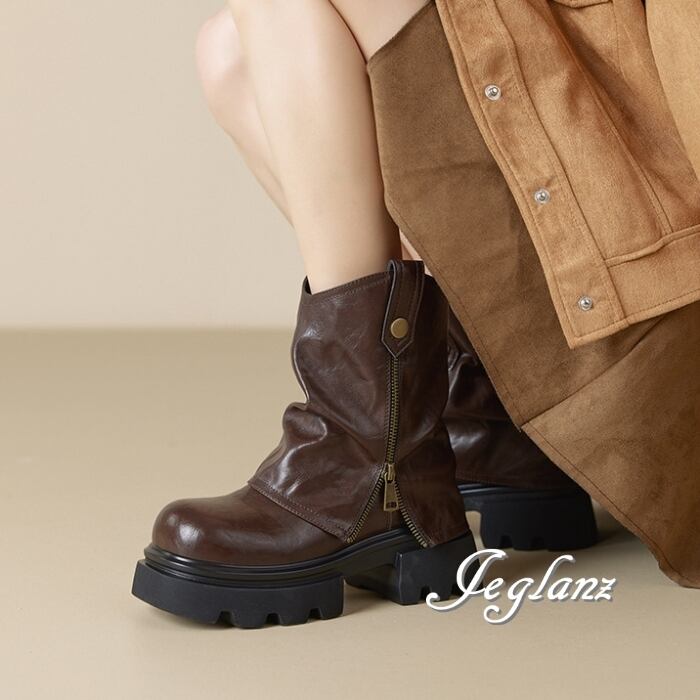 2色 ミドル ブーツ ウエスタン カウボーイ サイドファスナー ♪(MB438)ω
