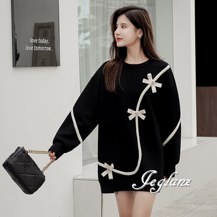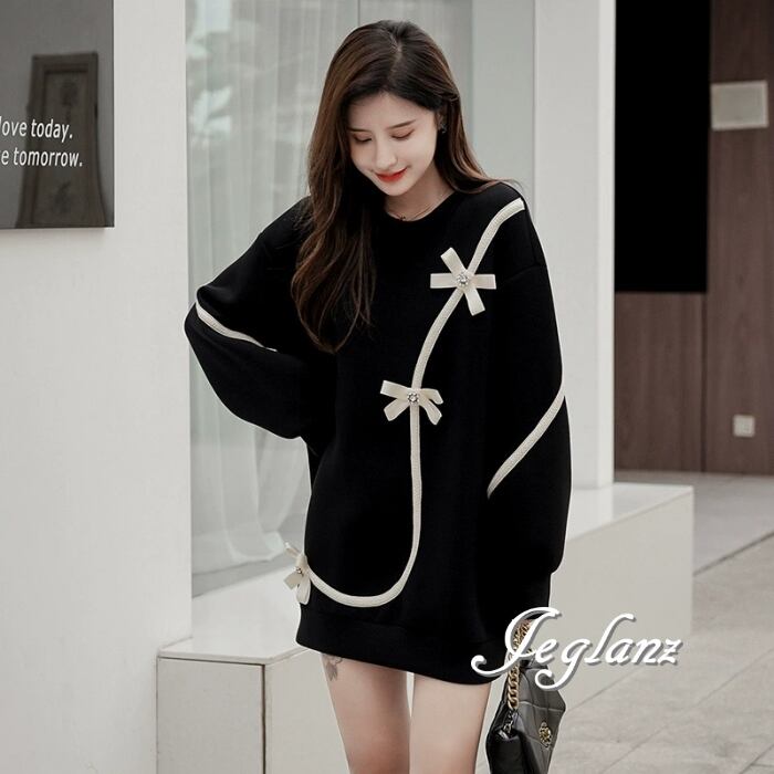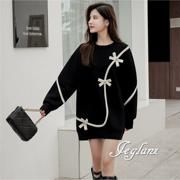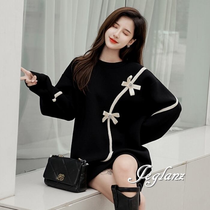 チュニック ワンピース リボン ルーズフィット モノトーン(MB447)γ