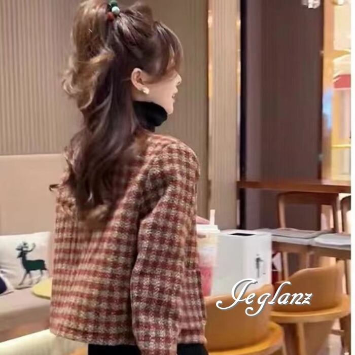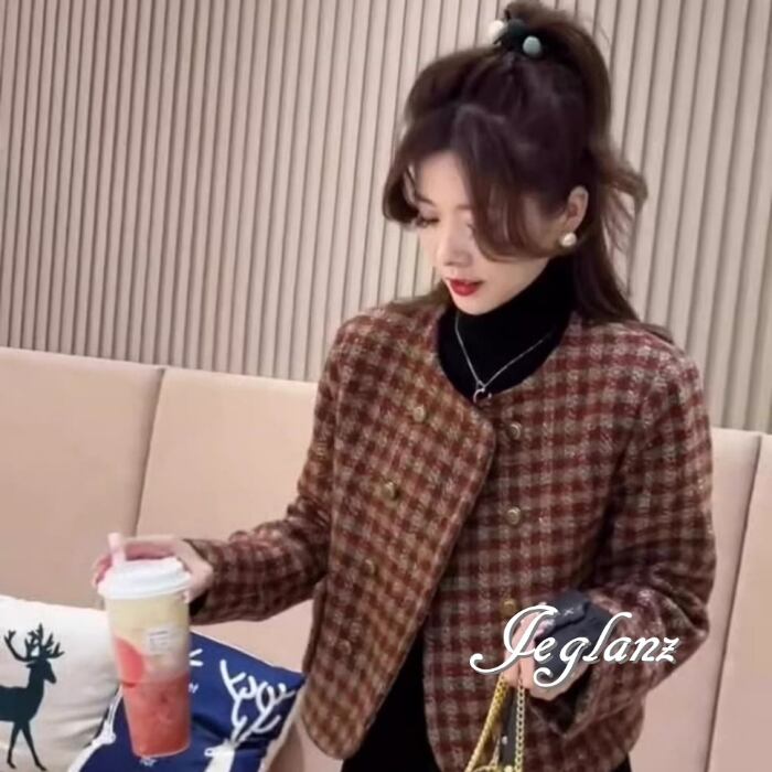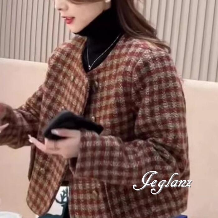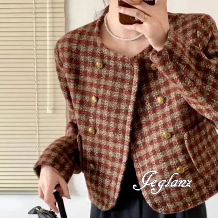 ニット ノーカラー ジャケット コート チェック ダブルブレスト(MB448)τ