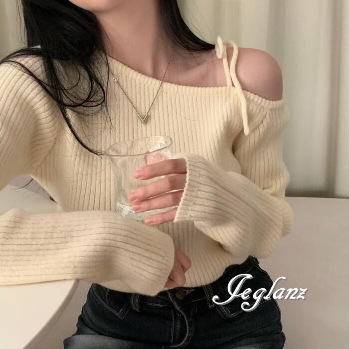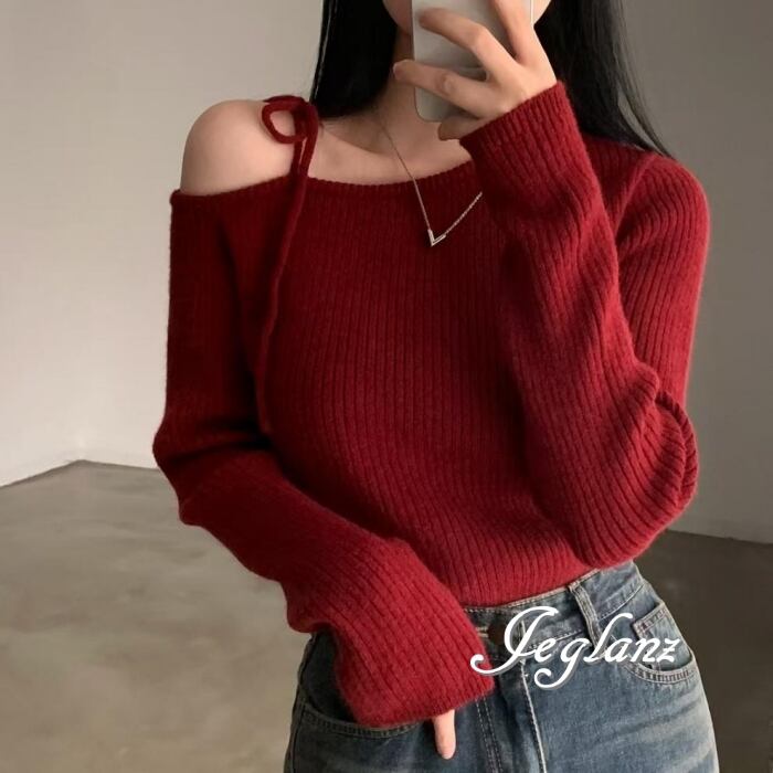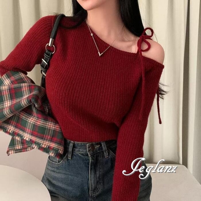ワンショルダーデザインが魅力的なニット