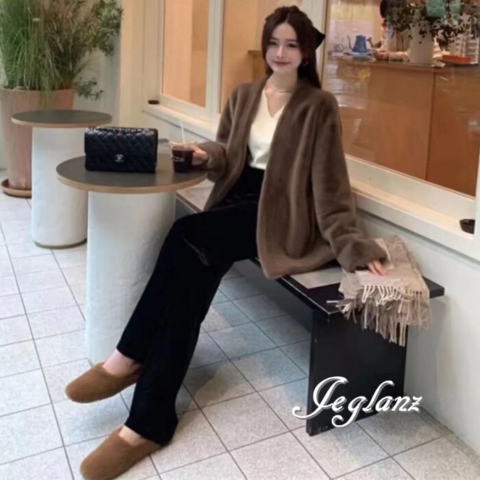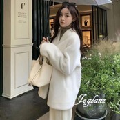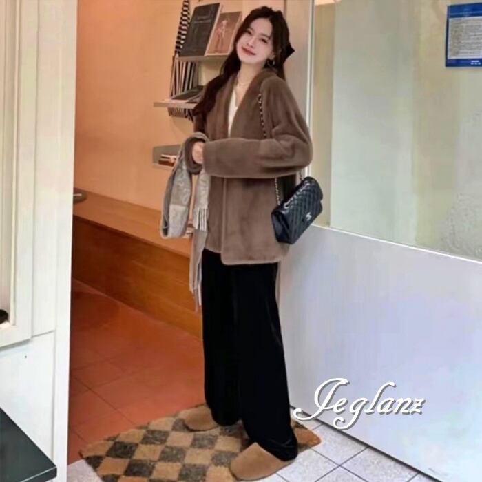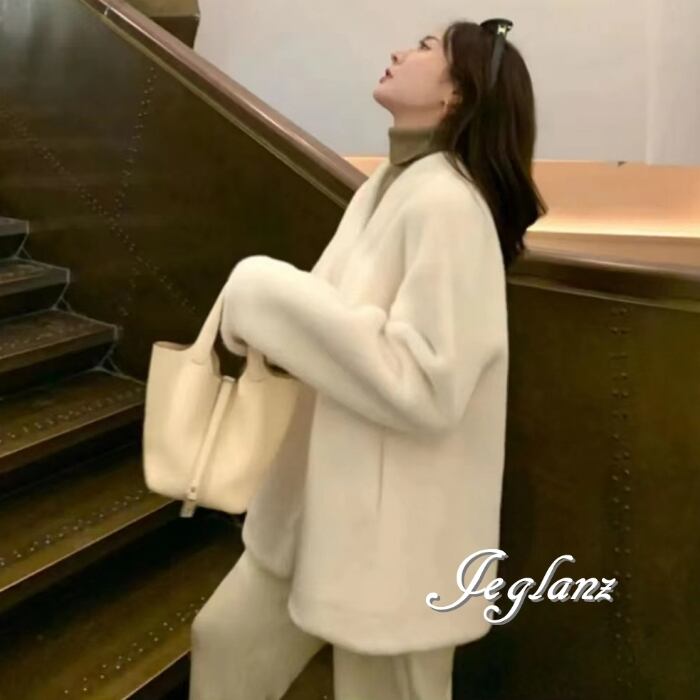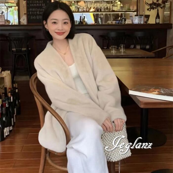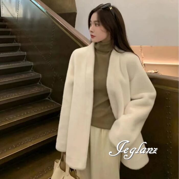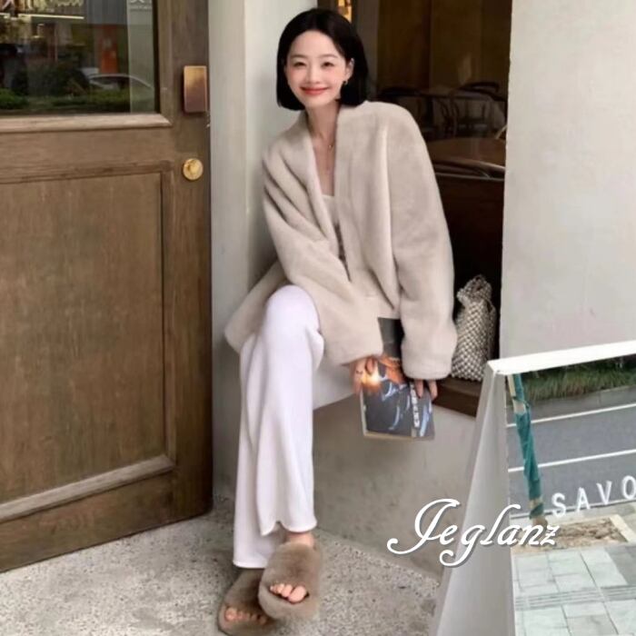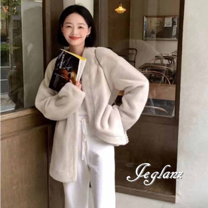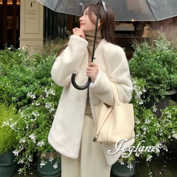 4色 ファー エコファ ジャケット アウター ノーボタン 着映え ♪(MB467)φ