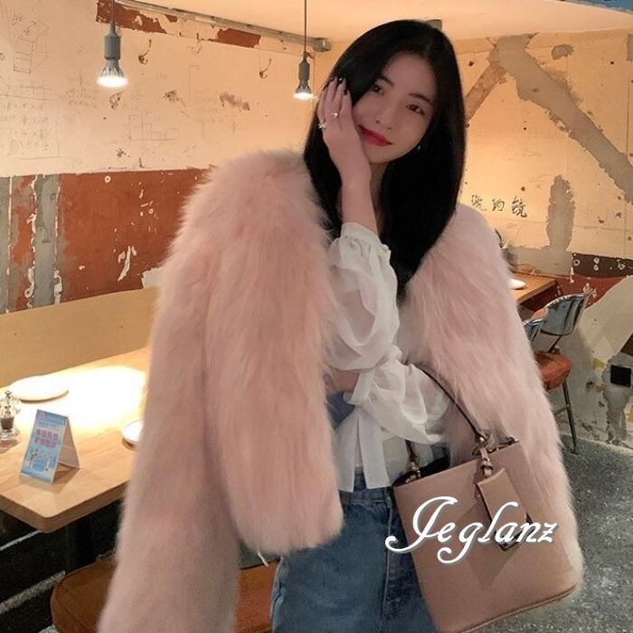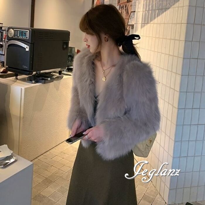 4色 ファー エコファ ジャケット アウター ノーボタン 着映え ♪(MB468)φ