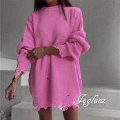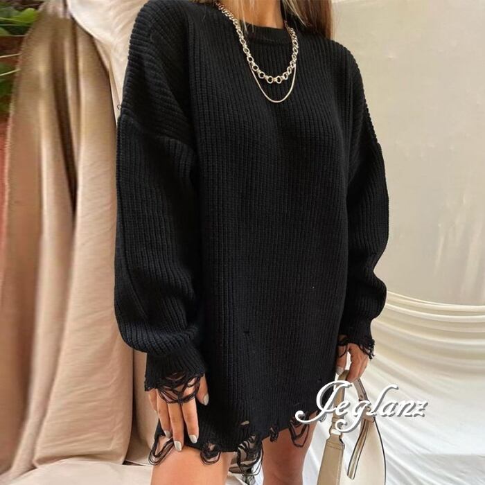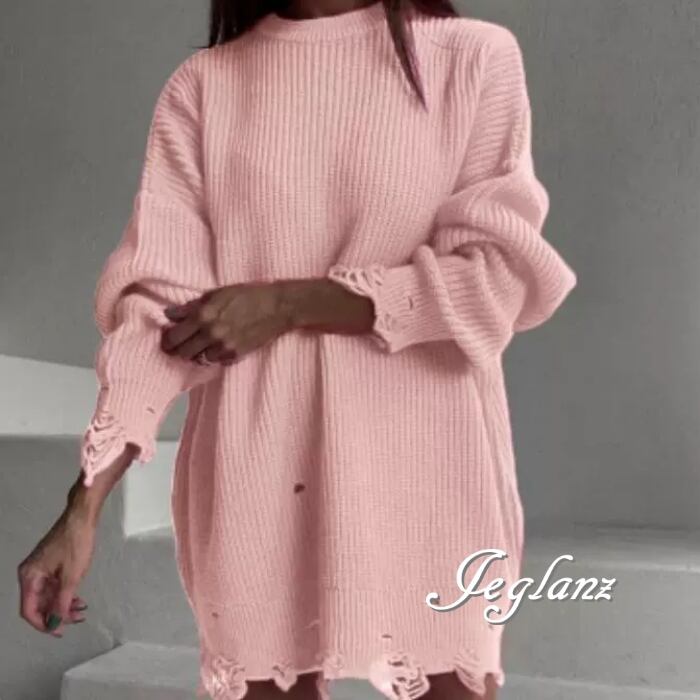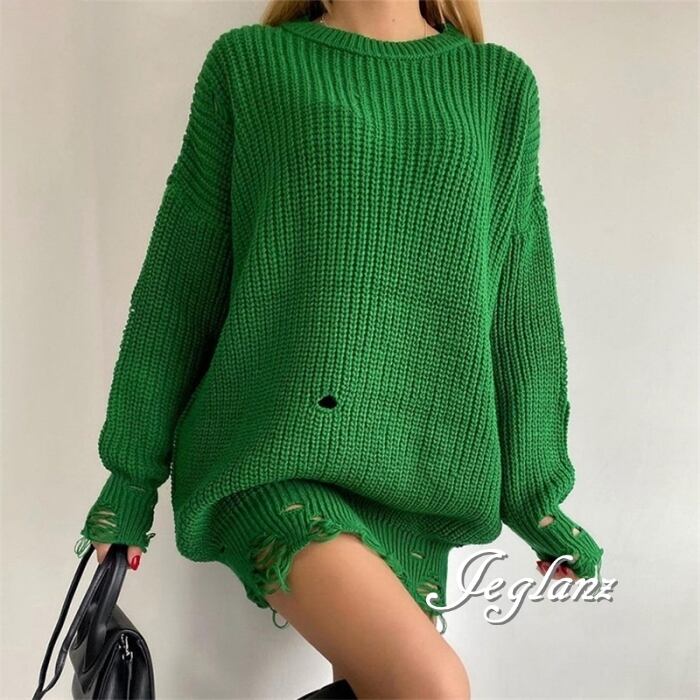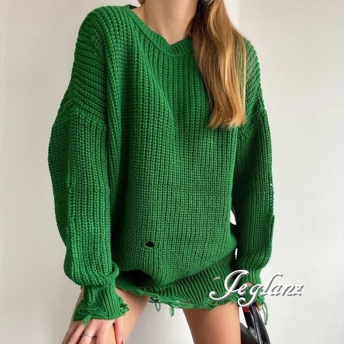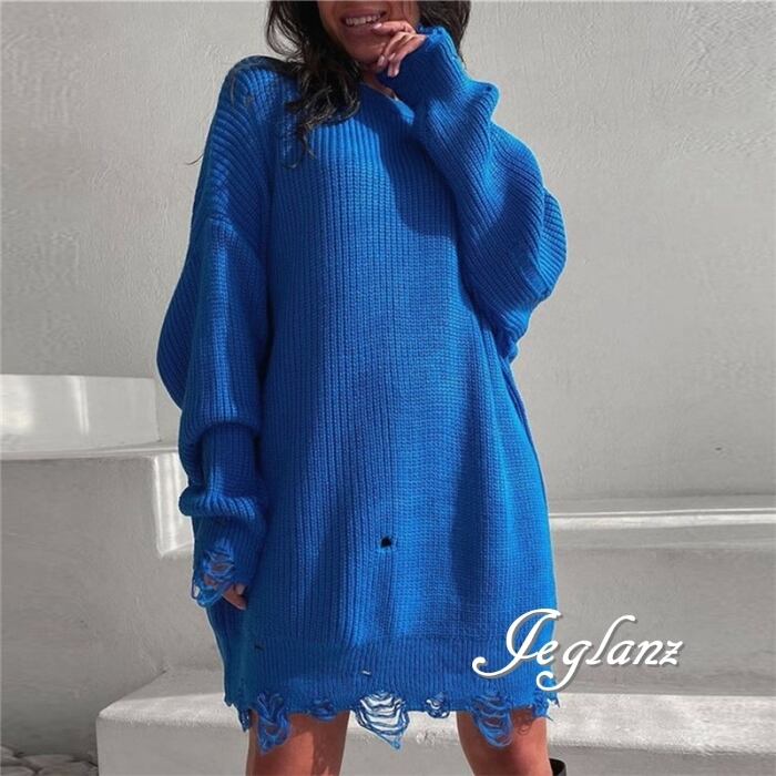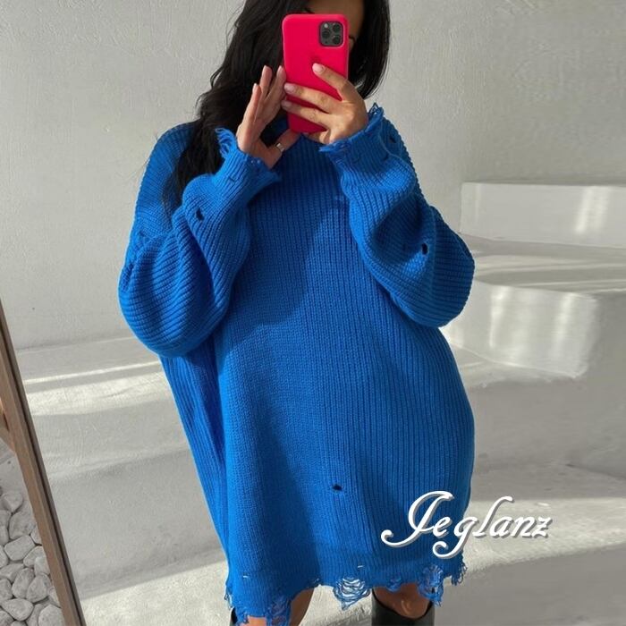 8色 ダメージ ニット セーター チュニック ワンピース 破れ (MB487)σ,ς*