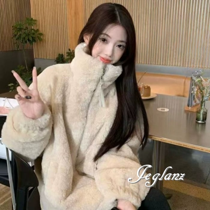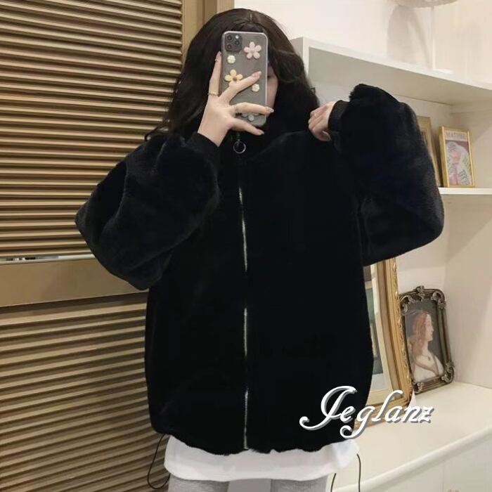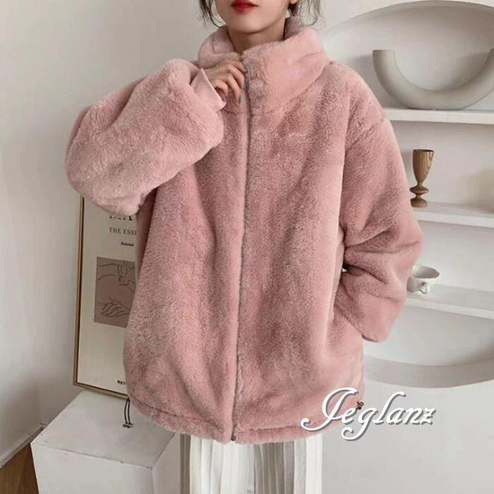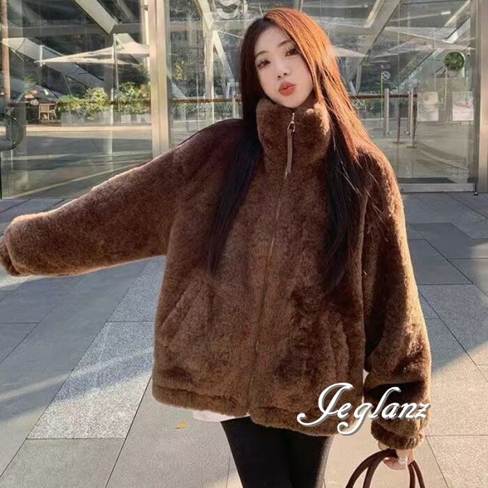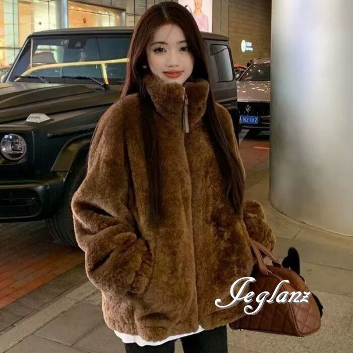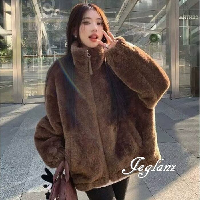 4色 ファー エコファ ジャケット ブルゾン ジップ ウォーム感 ♪ (MB499)φ