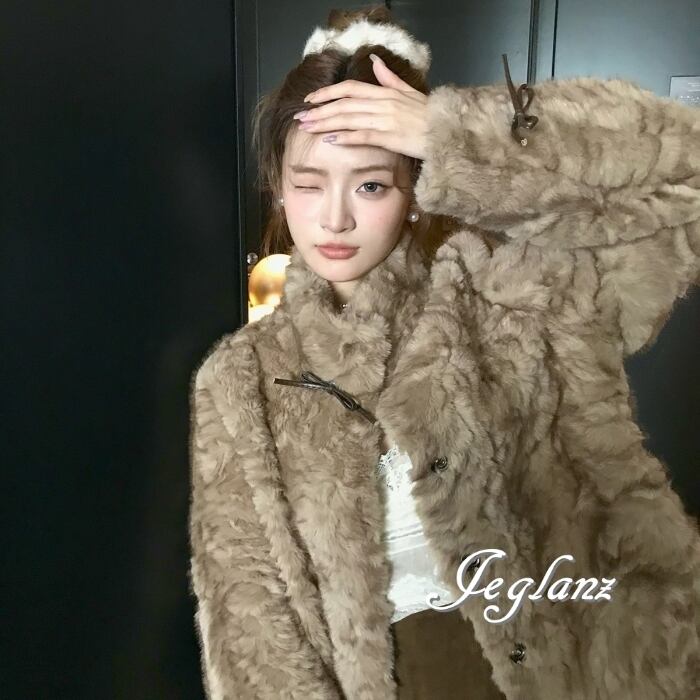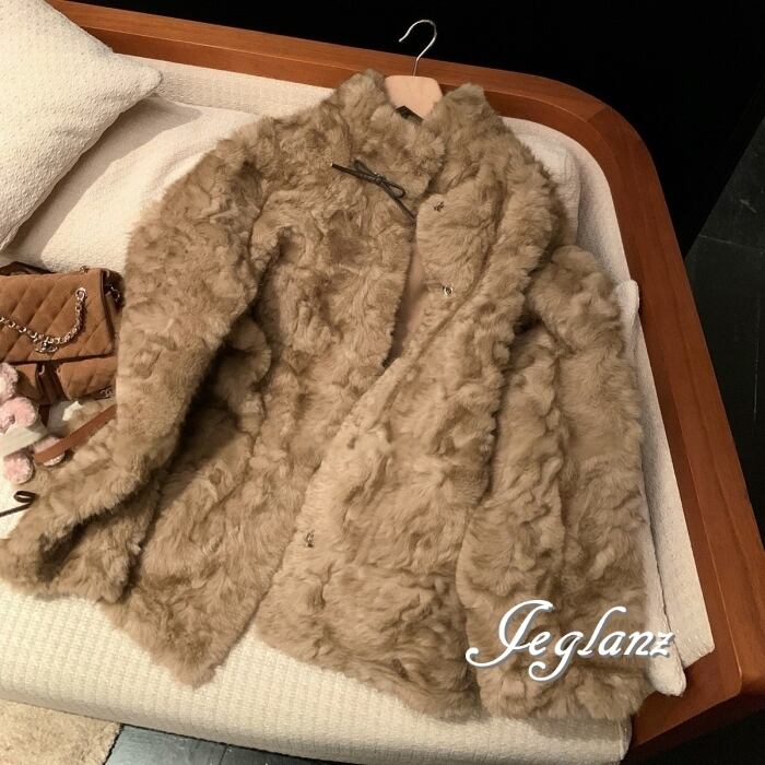 ファー エコファ ジャケット ブルゾン リボン ファンシー 着映え(MB520)φ