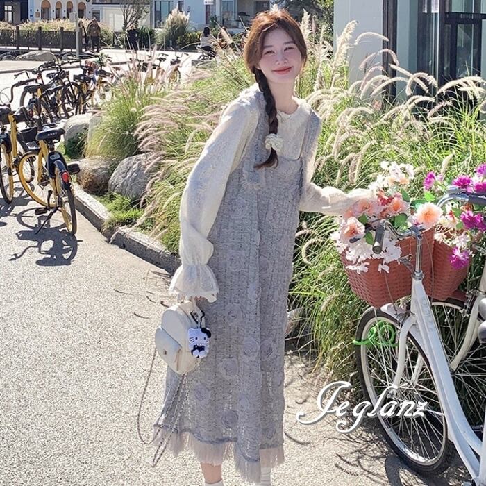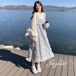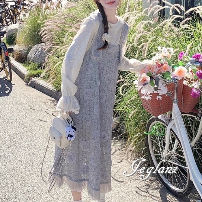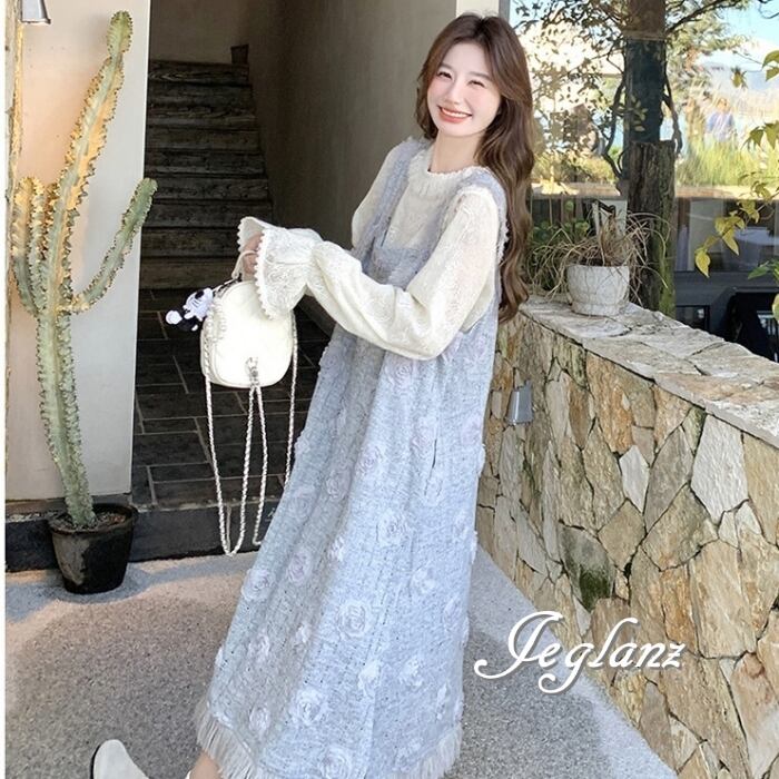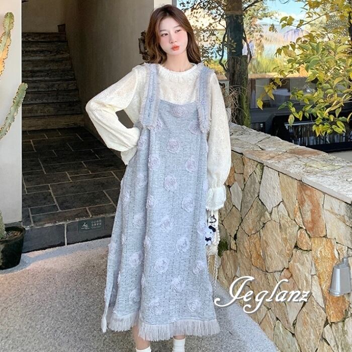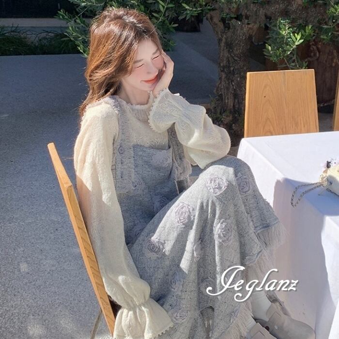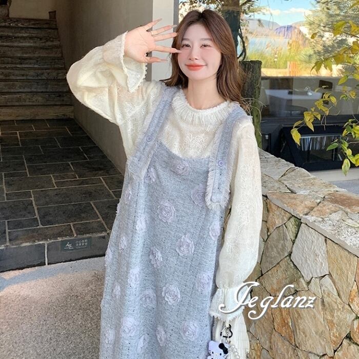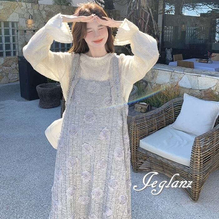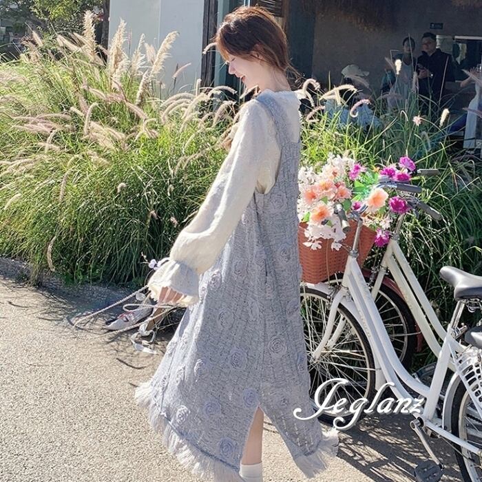 セットアップ 2点 トップス 立体フラワー サロペスカート 着やせ(MB566)γα