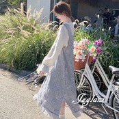 サロペスカートの立体フラワー&フリンジがインパクト