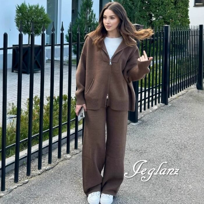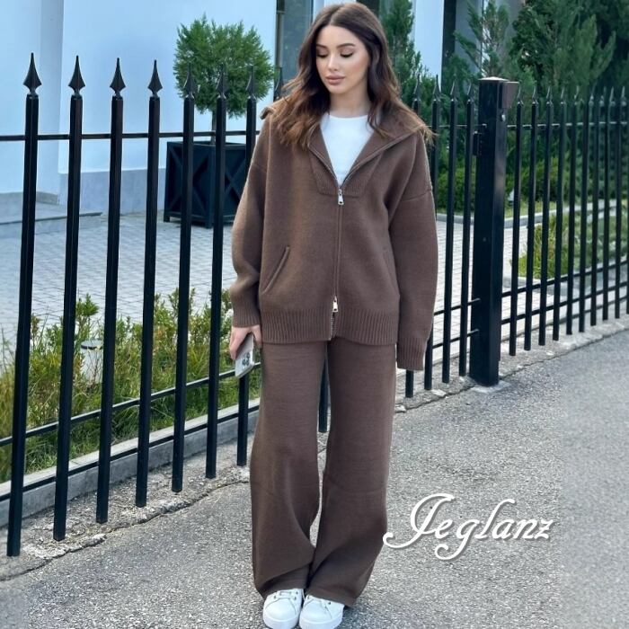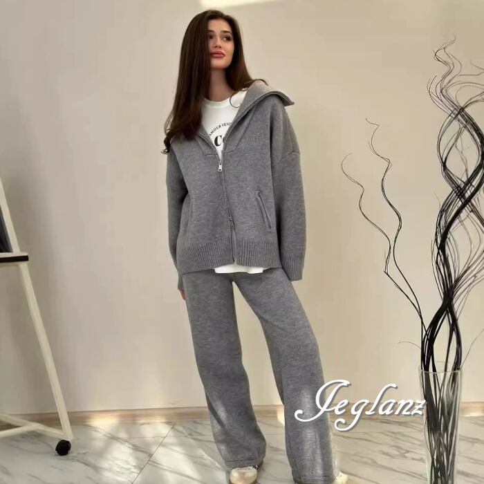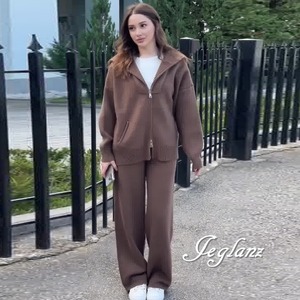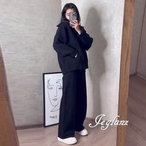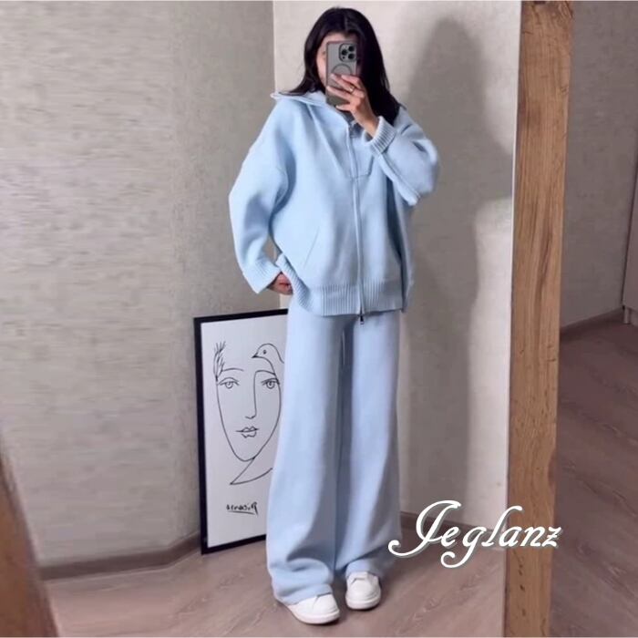 セットアップ 2点 ジップ 襟付き カーディガン パンツ スーツ 4色 (MB579)κ