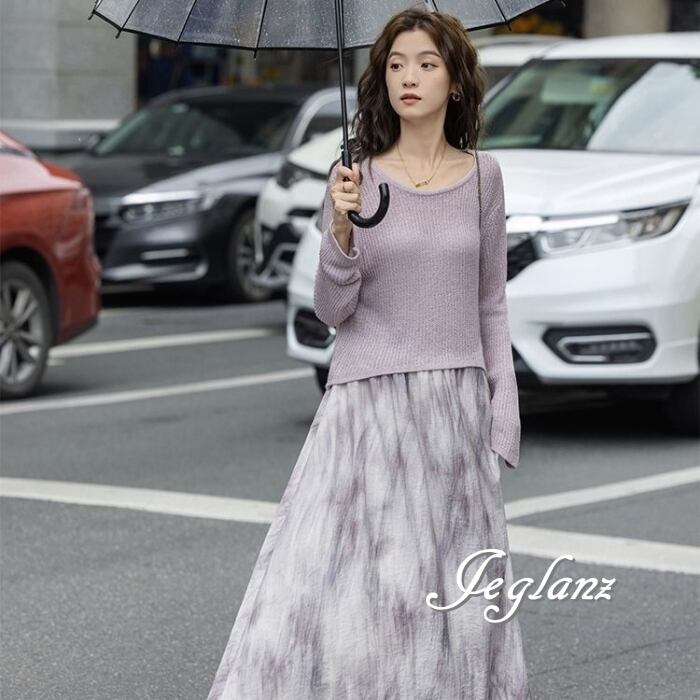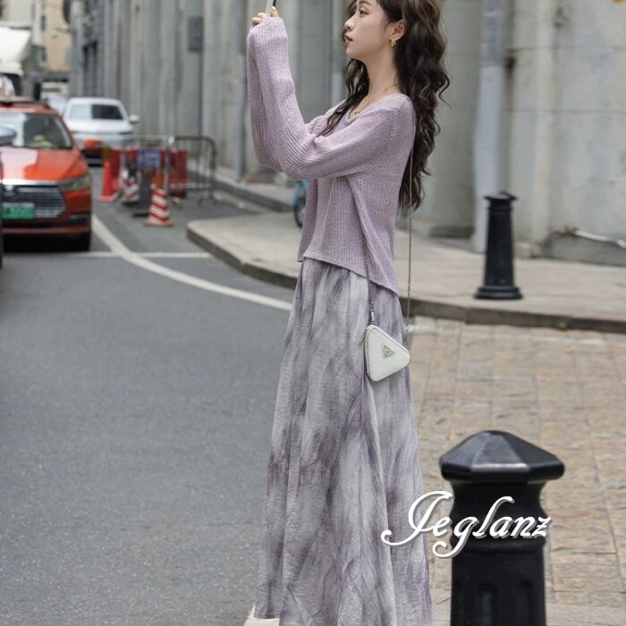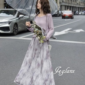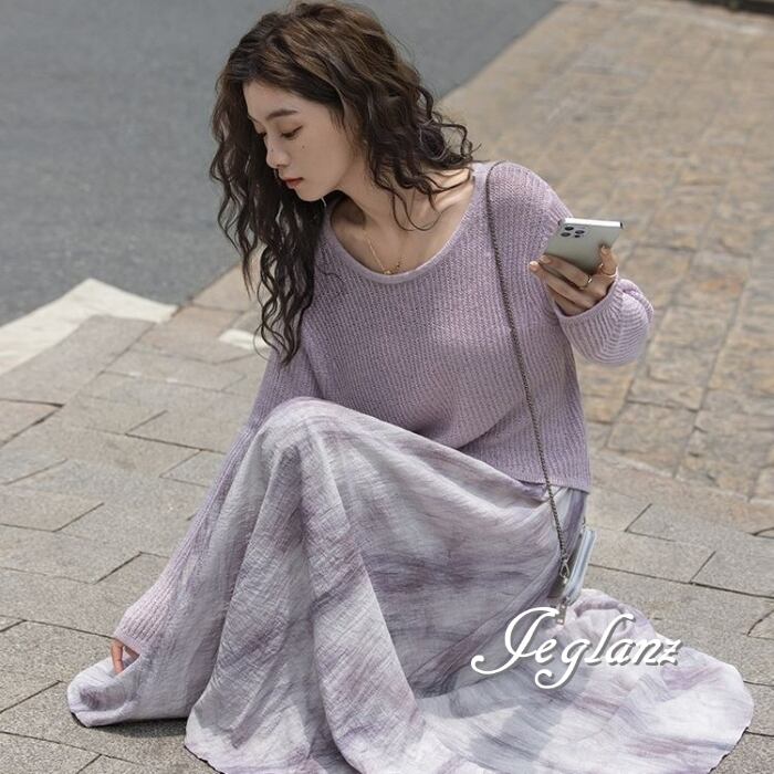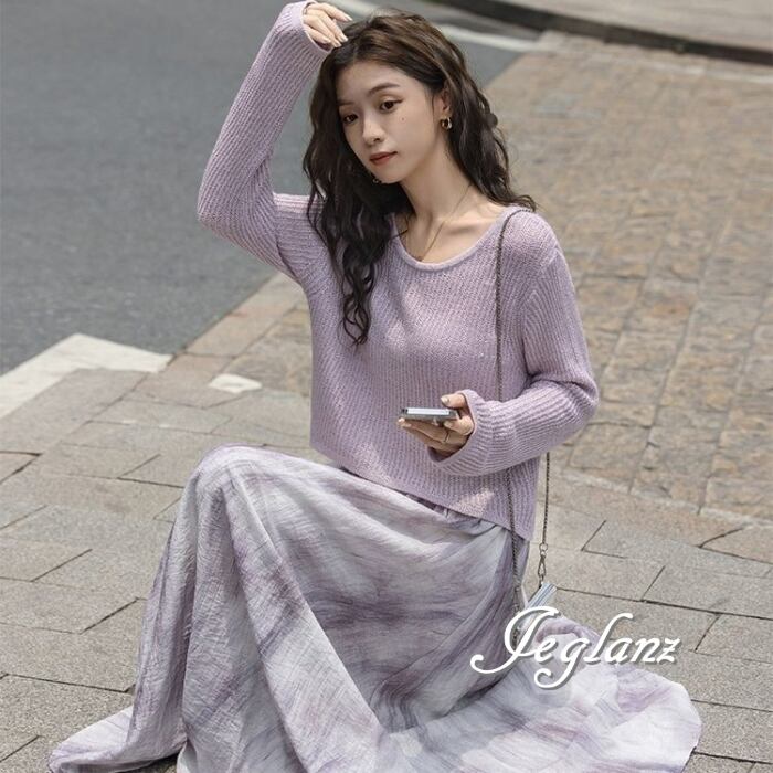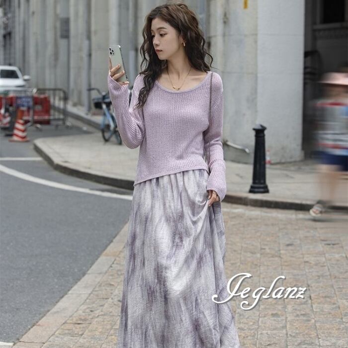 セットアップ 2点 ニット 長袖 トップス マキシ スカート エレ派(MB589)λ