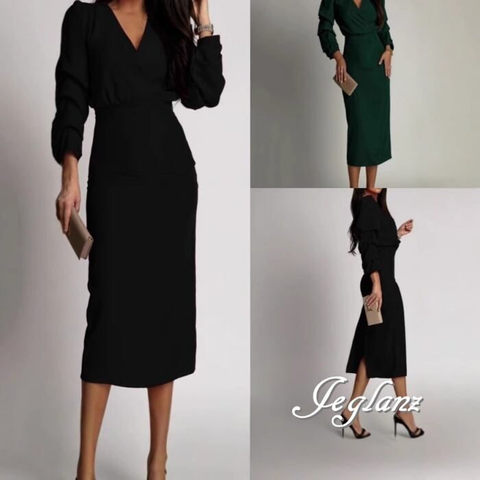 上品 フォーマル ワンピース ドレス V開き ボリューム袖 2色 ♪(MB597)γ
