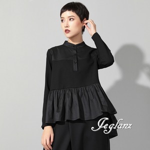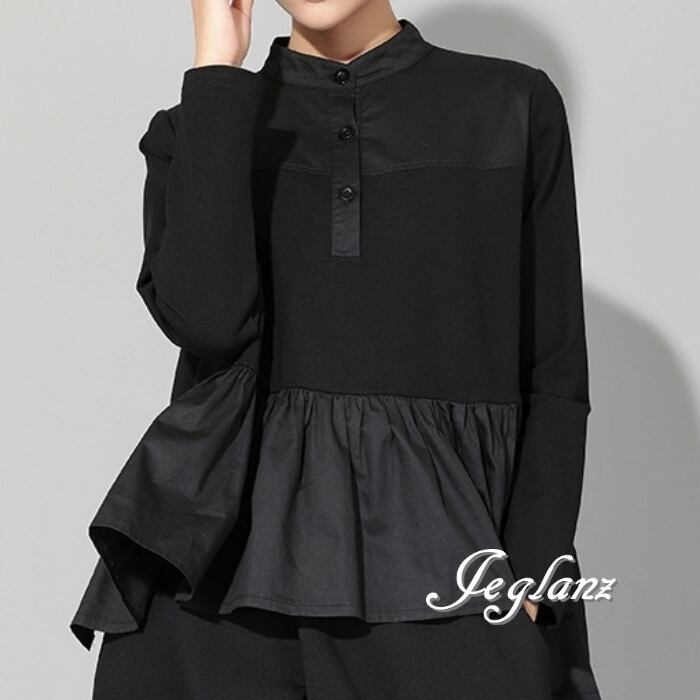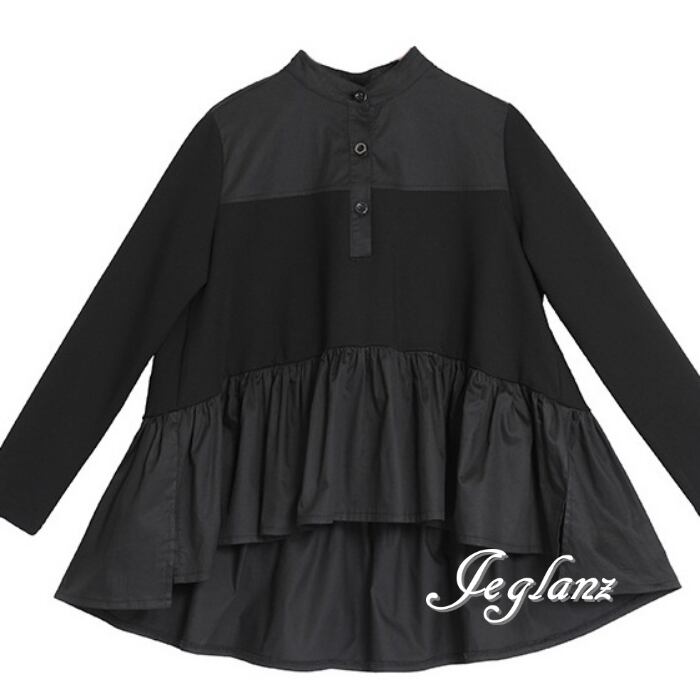 チュニック シャツ ブラウス フリル 前後差丈 ルーズフィット ♪(MB638)ρ